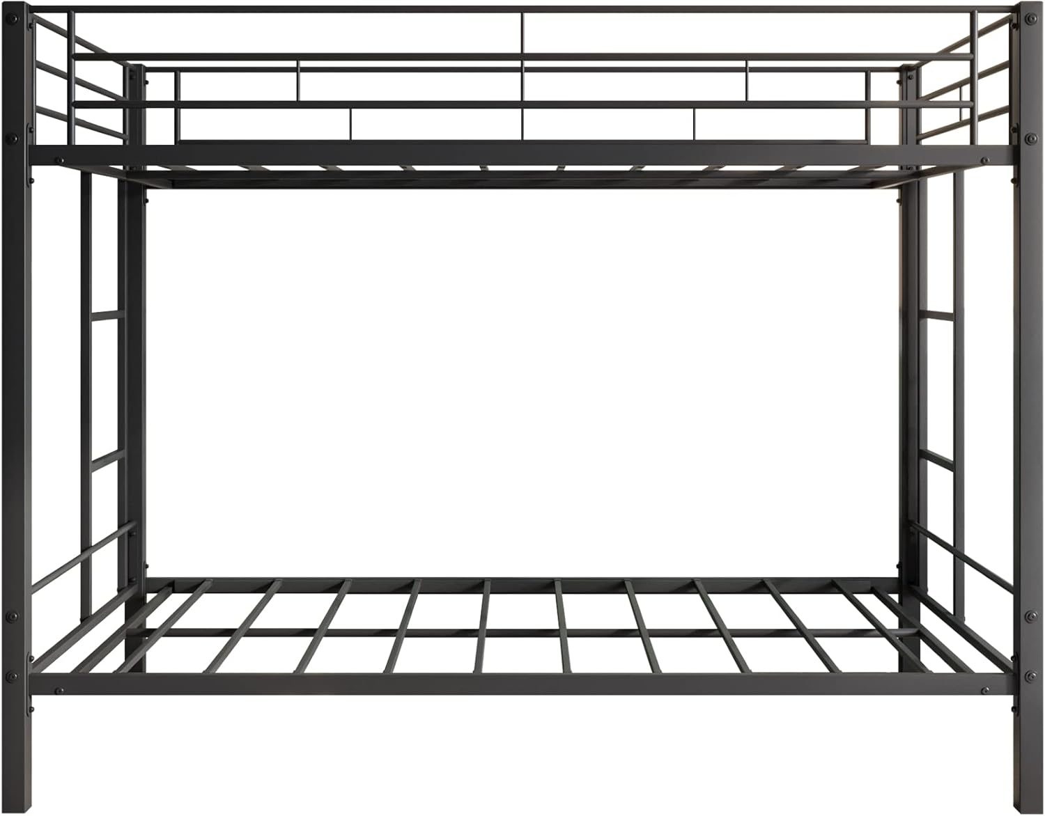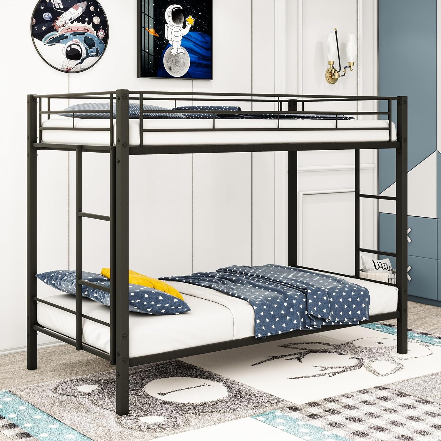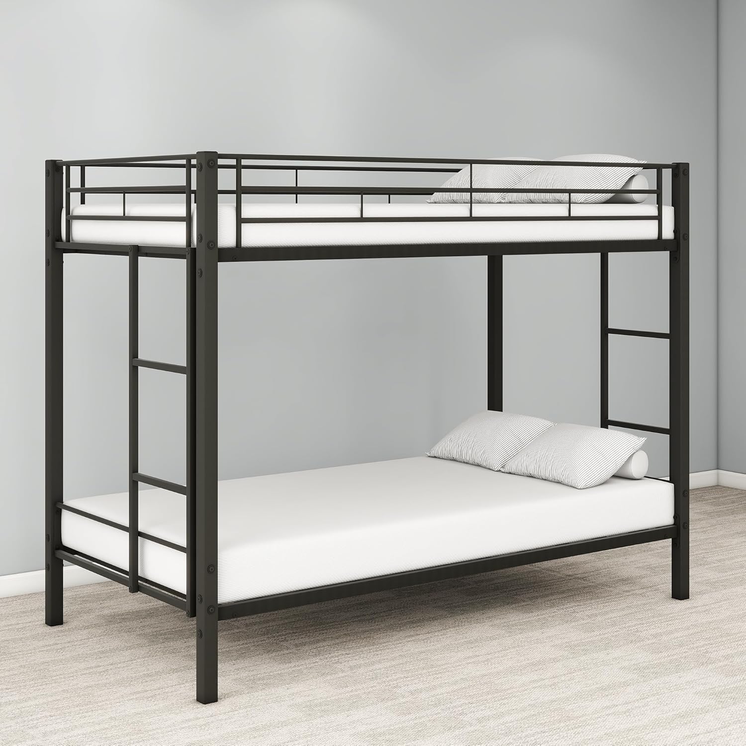 Bunk Metal Bed Frame Twin Over Twin with Slat & Ladder &Guardrail Space-Saving Twin Size Bed Frame/Under Bed Storage Heavy Duty Steel Bed Frame Black