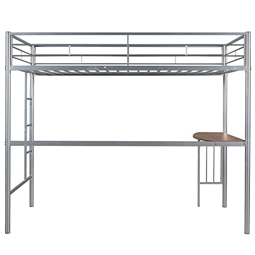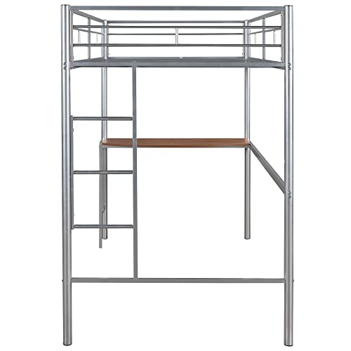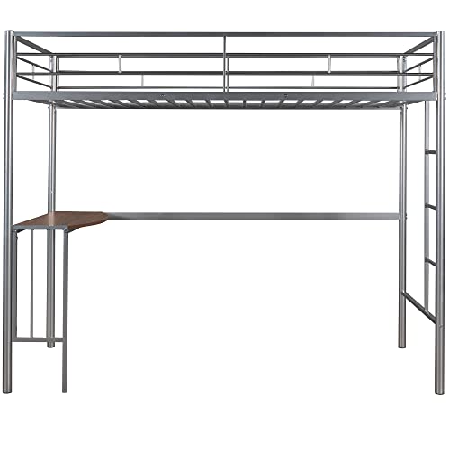 Bellemave Metal Twin Size Loft Bed with Desk, Heavy Duty Bedframe with Ladder and Safety Guardrail, Space-Saving, Noise Free, No Box Spring Needed (White)