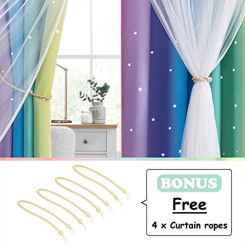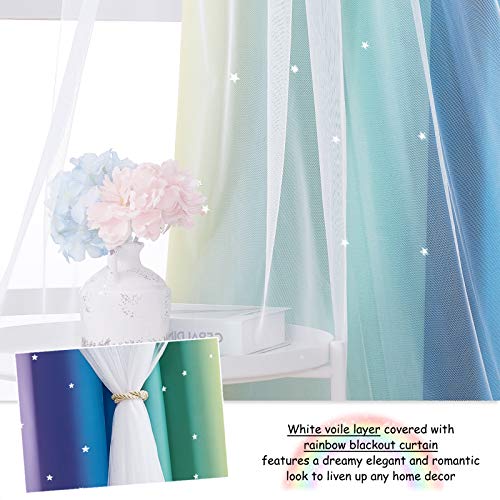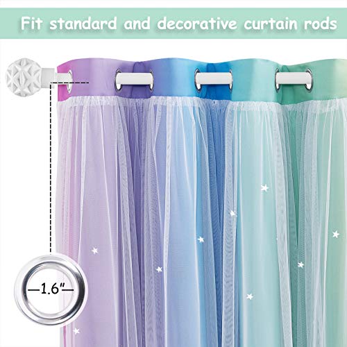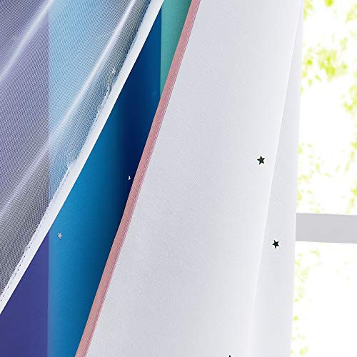 NICETOWN Nursery Curtains for Girls, Room Darkening Rainbow Curtains for Bedroom Kids Curtain Hollow-Out Star Window Drapes Curtain 84 inches Length for Living Room (Pink Purple, W52 X L84, 2 Panels)
