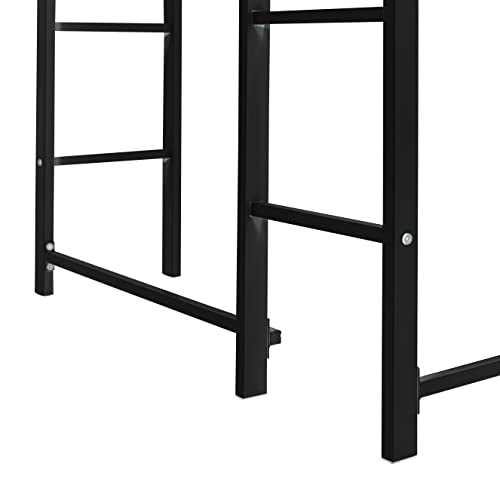 Twin Size Loft Bed with Desk and 2 Shelves, Metal Loft Bed Frame with Full Length Safety Guard & Ladder, Space Saving Loft Beds for Kids, Teens, No Noise, No Box Spring Needed, Silver