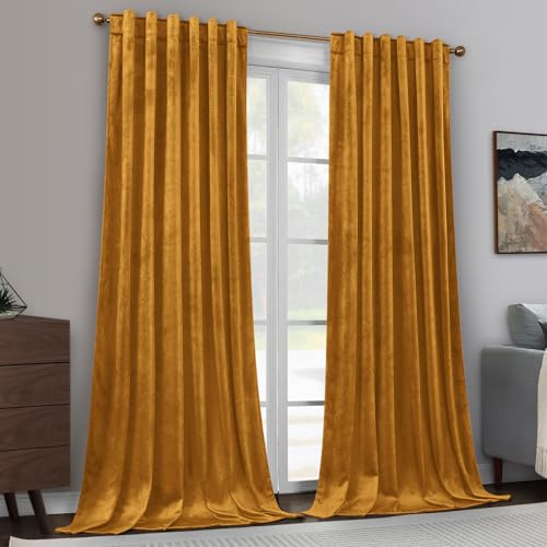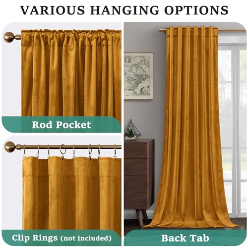 HOMEIDEAS Teal Green Velvet Curtains 52 X 96 Inches, 2 Panels Thick and Luxury Room Darkening Curtains/Drapes, Thermal Insulated Pocket Back Tab Window Curtains for Living Room