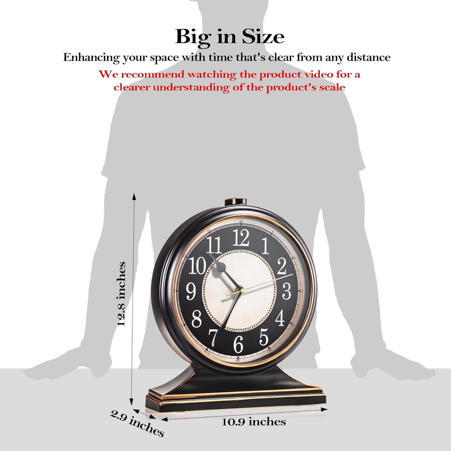 AYRELY® Vintage Desk Clock Silent-Non-Ticking 10-inch dial Table Clock,Retro Mantel Clocks and Easy to Read for Living Room, Bedroom, Shelf Decoration, Fireplace, Farmhouse Decor