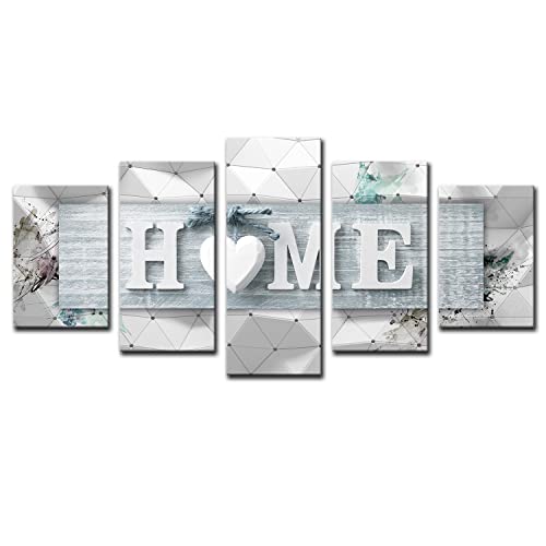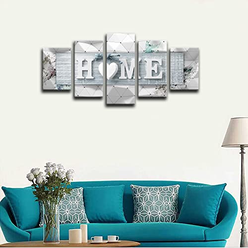 AWLXPHY Decor Home Love Wall Art Canvas Blue and White 5 Panels Framed Painting for Living Room Decoration Modern Still Life Love Stretched Artwork 3D Giclee Home Decor(Blue, W40 x H20)