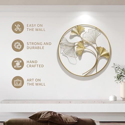 HEBOIX Gold Large Round Metal Wall Decor for Living Room,Modern Leaf Metal Wall Art,Big 3D Wall Sculptures Handmade Home Decoration for Dinning Room/Bedroom/Entryway/Kitchen/Office 31''Lx31''W