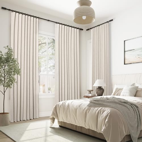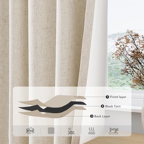 White Linen Blackout Curtains 96 Inch 2 Panels Set for Living Room Sliding Door Back Tab Thermal Insulated Long Room Darkening White Drapes 96 Length Heavy Thick Bedroom Block Out Curtains 8 Ft