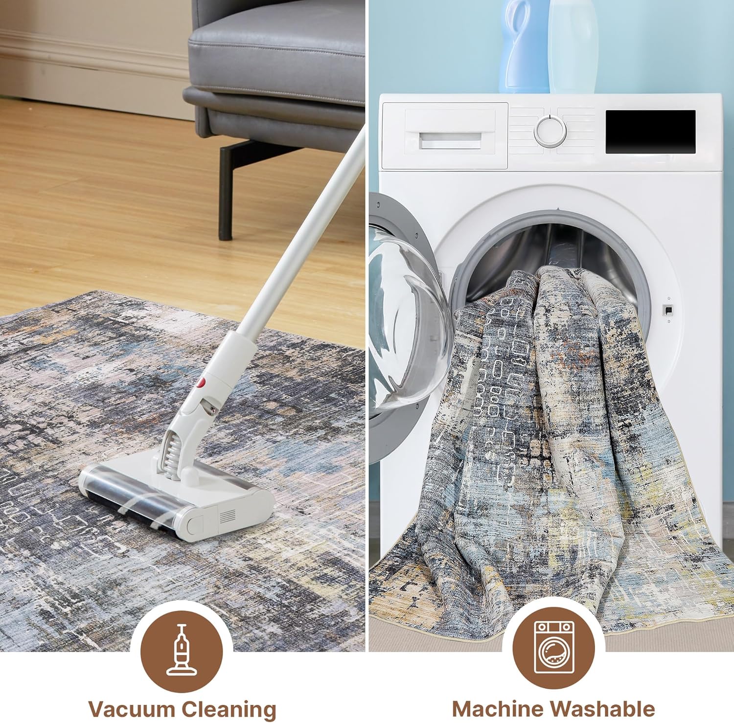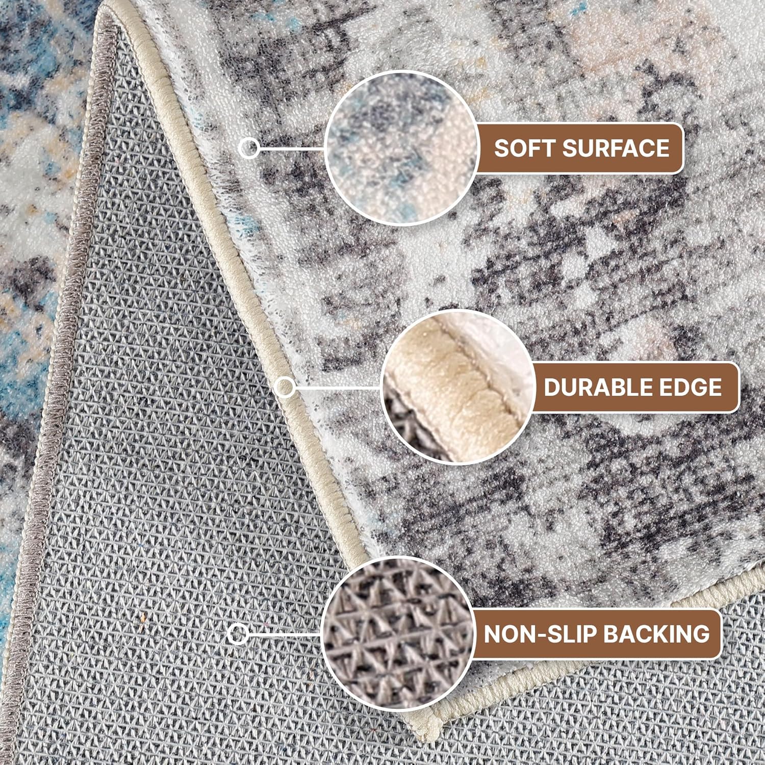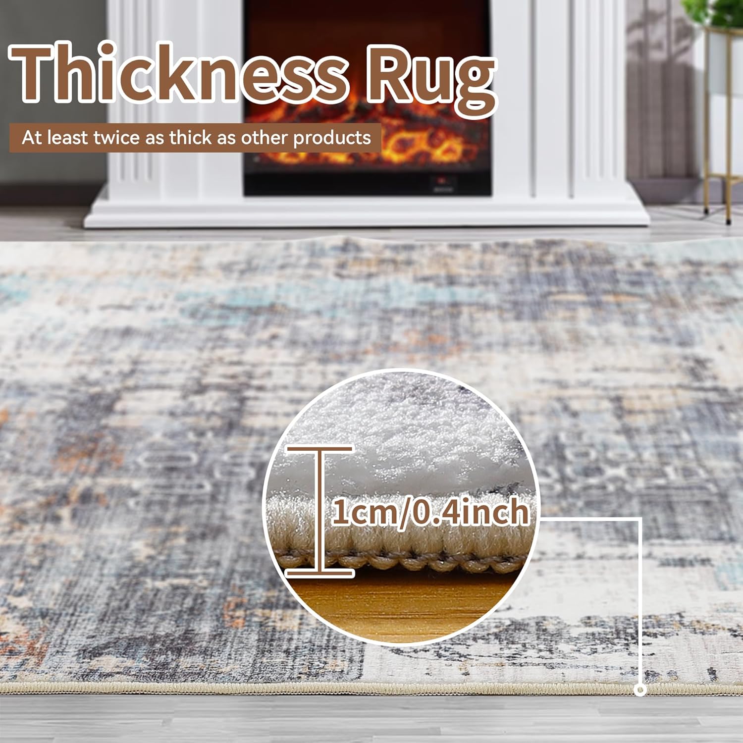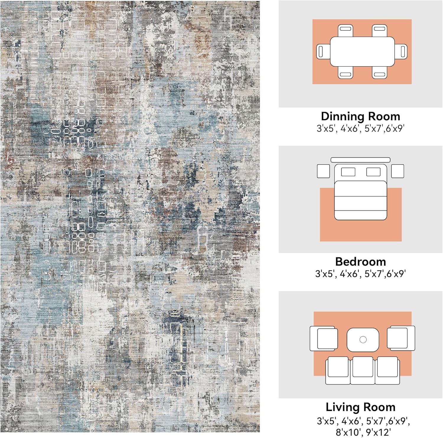 Abstract Area Rug 8x10, Washable Large Rugs for Living Room, Ultra Soft Non-Slip Bedroom Rug Print Distressed Non-Shedding Carpet Rug for Dining Room Dorm Office Grey/Aqua/Dark Pewter 8 x 10