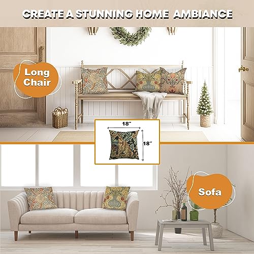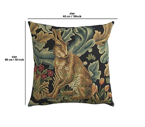 Brown Hare Square Throw Pillow Cover - 18x18 Decorative Boho Cushion Case for European Cotton Home Decor, Room Decor, Jacquard Woven Belgian Cushion for Living Room