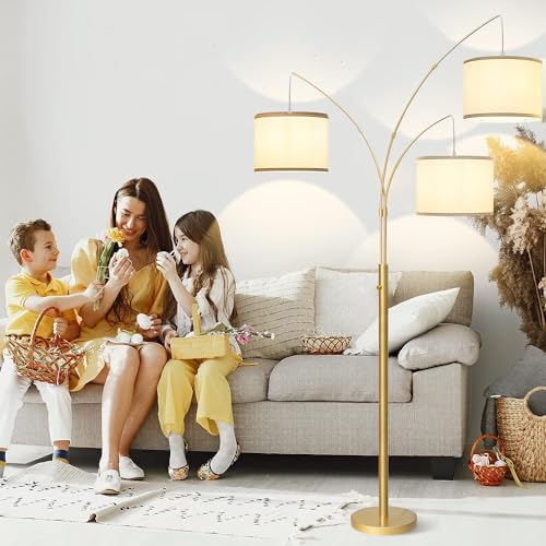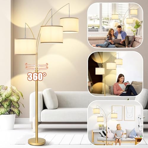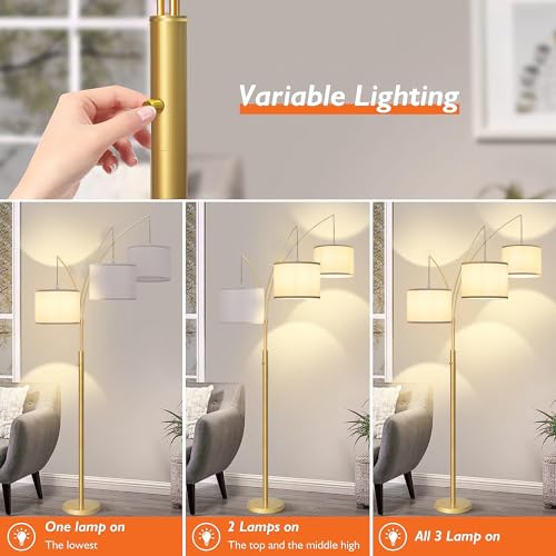 3 Lights Arc Floor Lamps for Living Room,Modern Tall Standing Lamp Hanging Over The Couch with Shades & Heavy Base,Mid Century Black Tree Floor Lamp for Bedroom Office