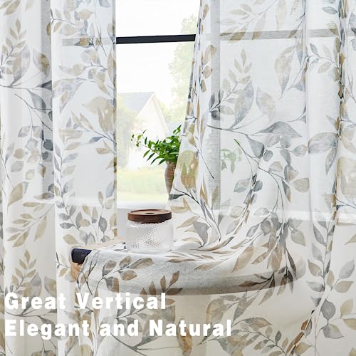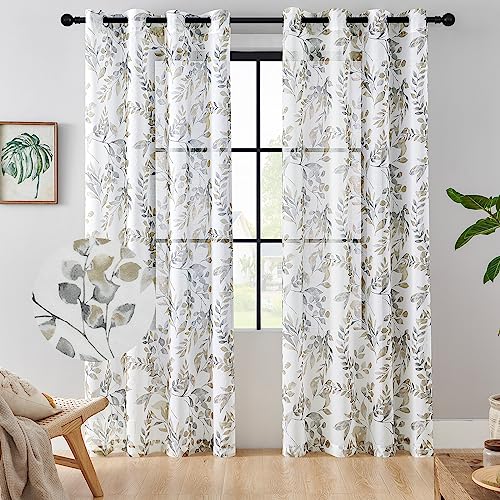 Living Room Curtains 108 inches Length Semi Sheer Curtains Floral Printed Light Filtering Grommets Top Drapes Window Treatments for Living Room Bedroom 2 Panels