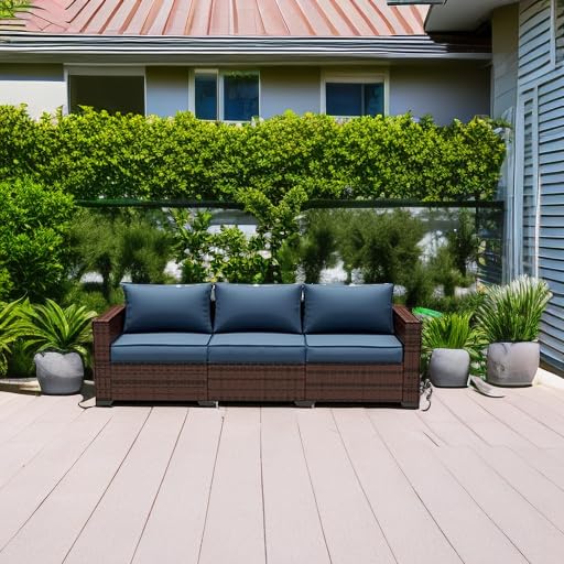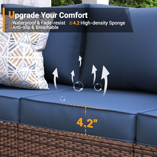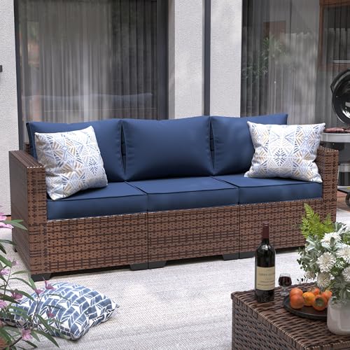 UDPATIO Love-Seat Patio Wicker Sofa, Outdoor Rattan Sectional Couch Furniture Steel Frame w/Furniture Cover Non-Slip Cushion and Deep Seating High Back, Khaki