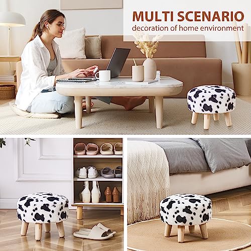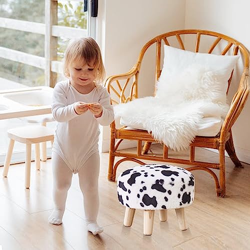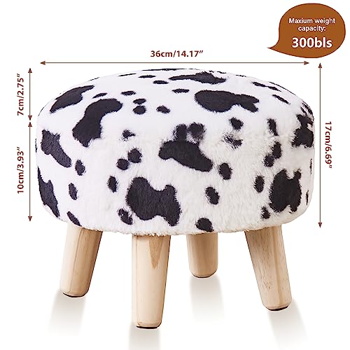 Cpintltr Round Footstool Ottoman Rabbit Wool Mushroom Stool Solid Wood Stool Small Upholstered Ottoman Shoe Changing Foot Stool Step Stool Sofa Footrest Stool for Living Room Bedroom (Blue)