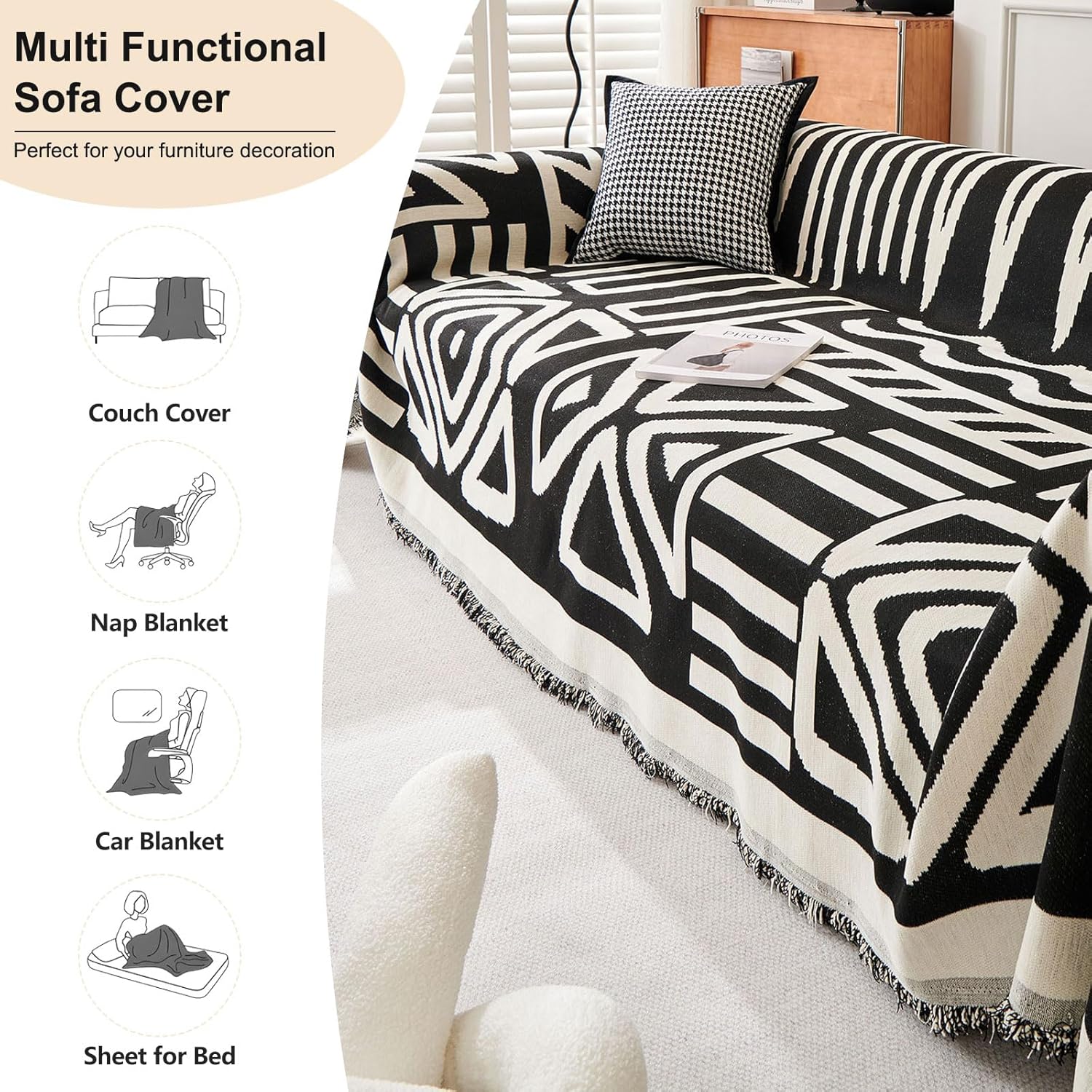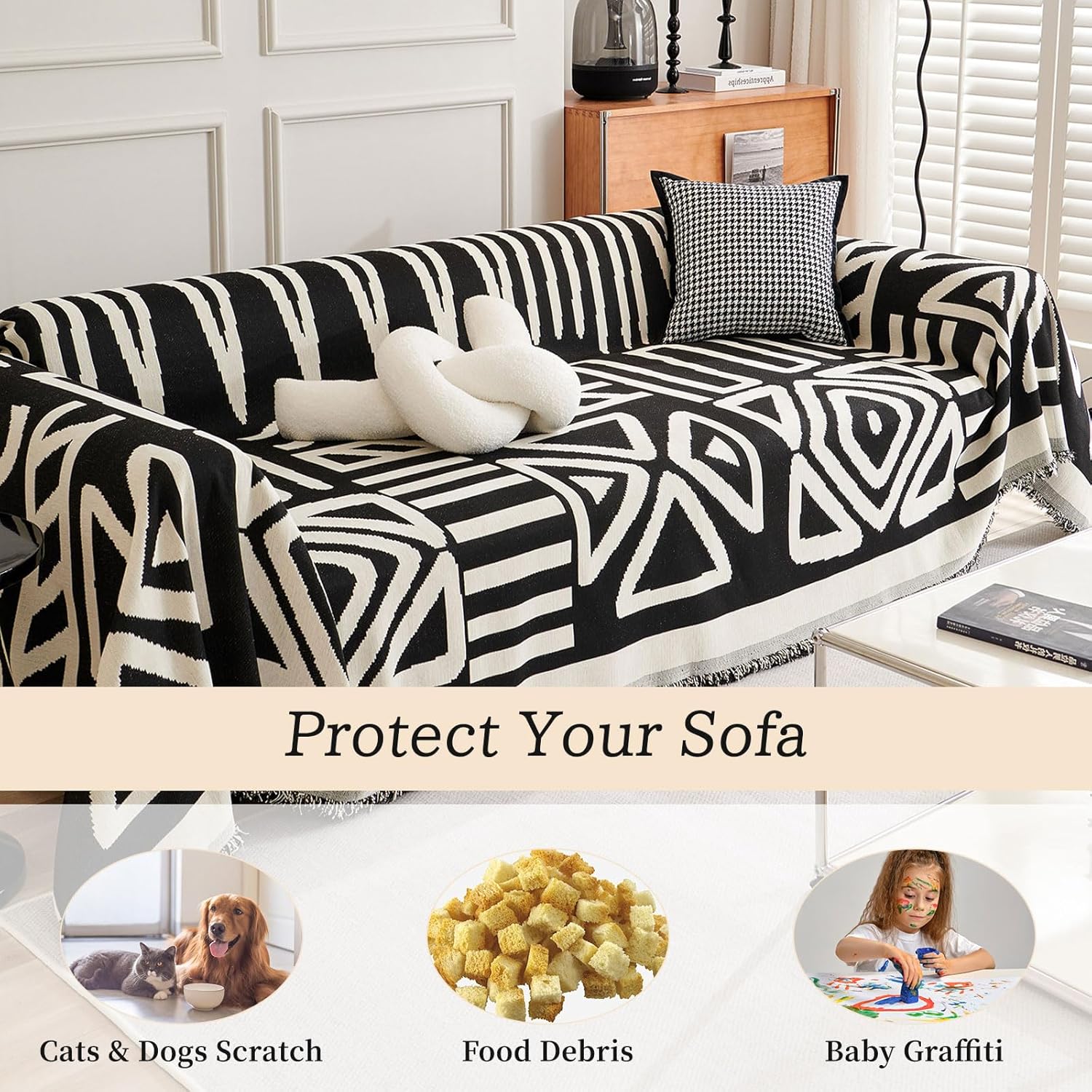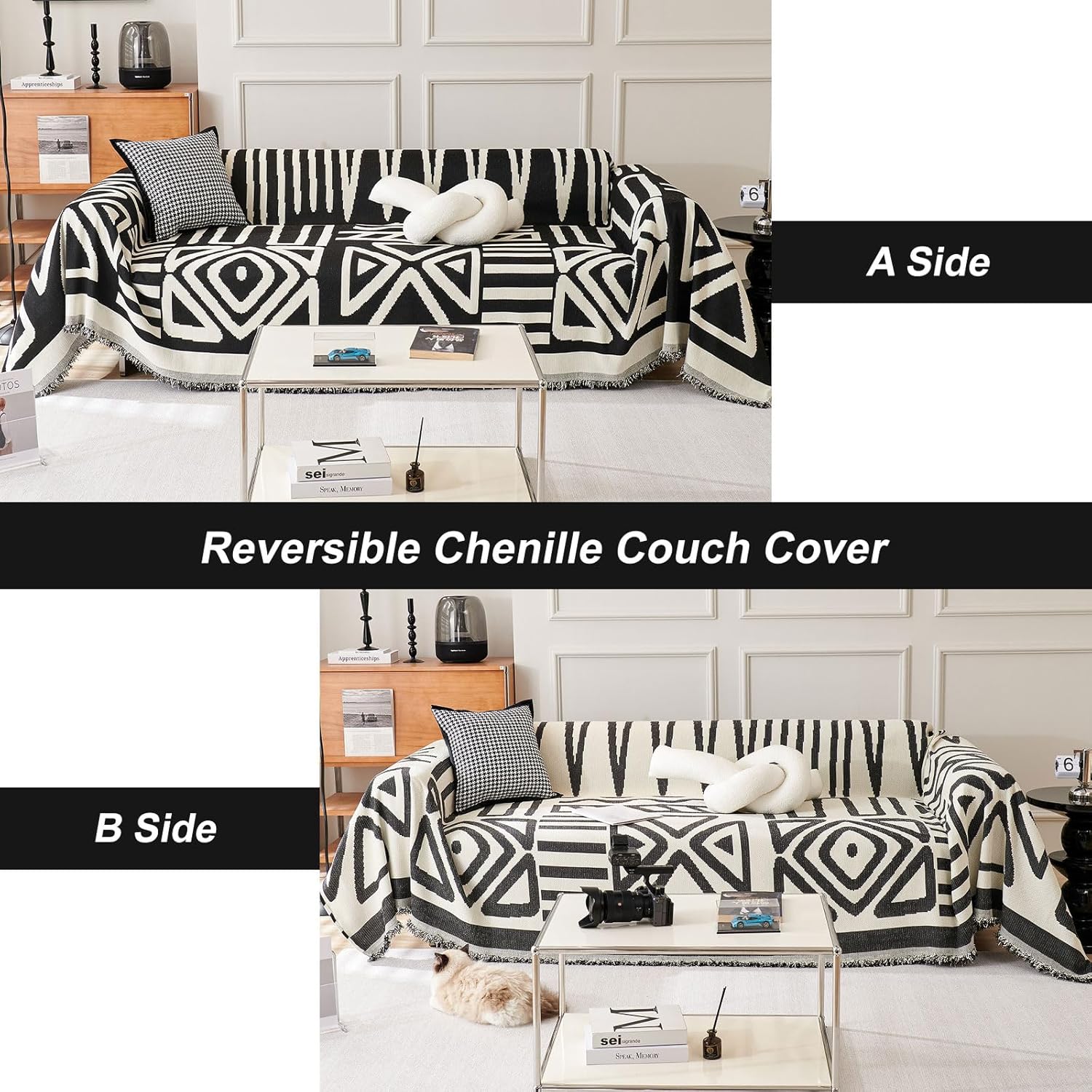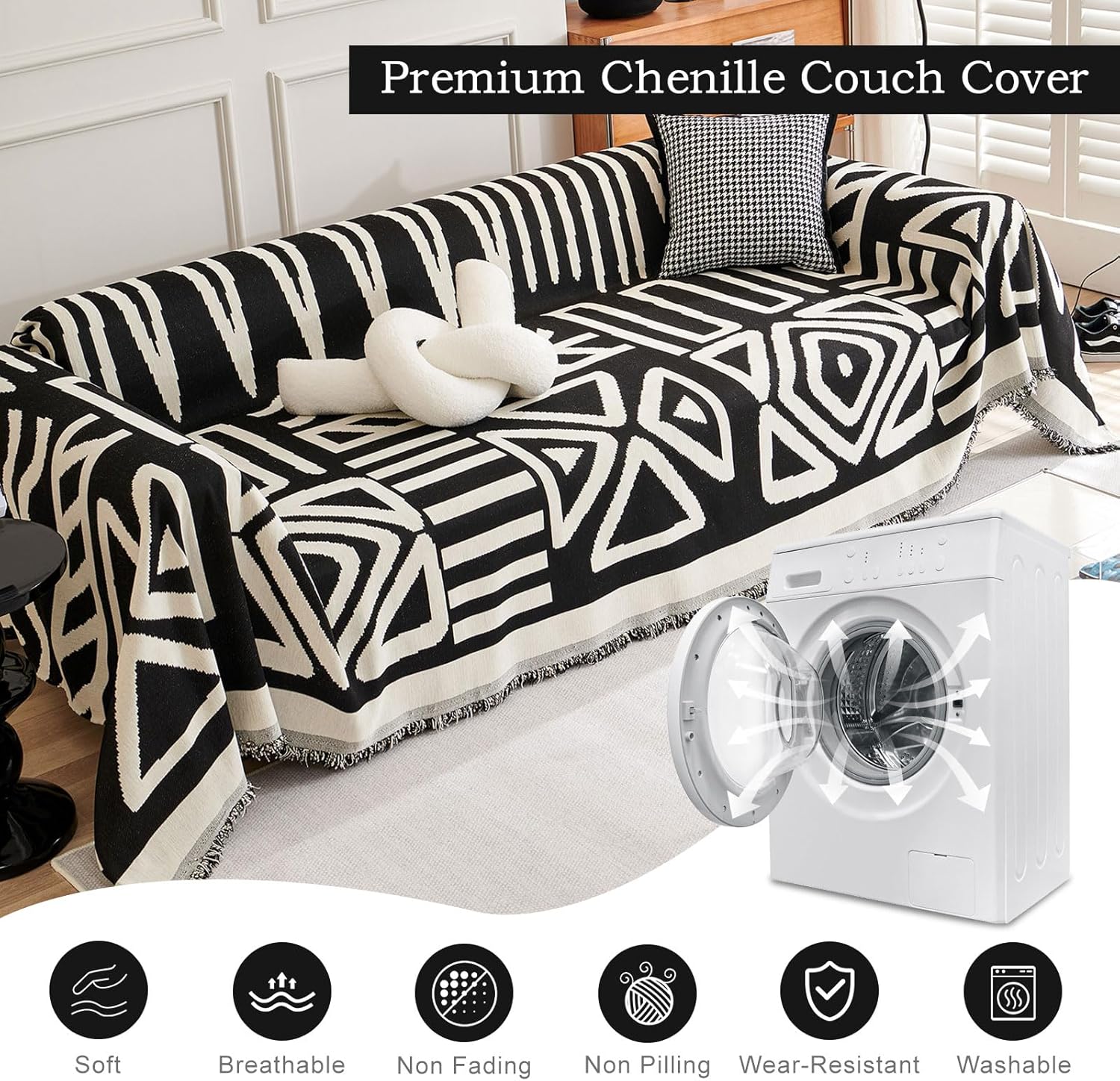 ROOMLIFE Boho Couch Cover for 3 Cushion Couch L Shape Sofa Covers for Sectional Sofa Reversible Silpcover for Dogs Washable Chenille Furniture Protector for Living Room,91"x150"