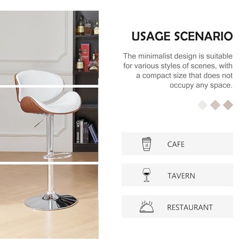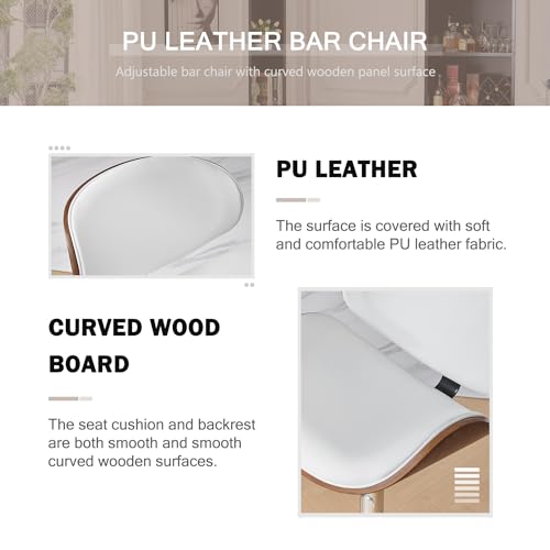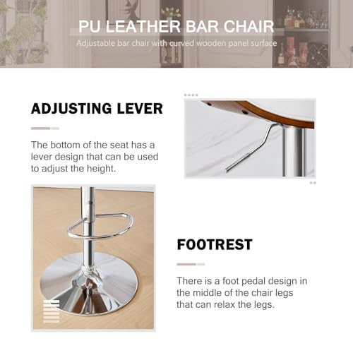 Swivel Bar Stools Set of 2, Adjustable PU Leather BarStools with Back, Modern Counter Height Bar Stools for Kitchen Island, Bar, Dining Room (Black)