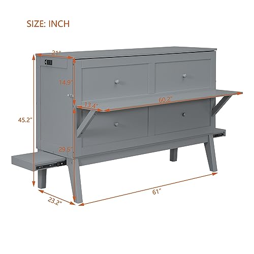 XD Designs Multipurpose Design Twin Size Murphy Bed with Wardrobe and Open Shelves, Solid Wood Murphy Bed Wall Bed Chest Storage Cabinet Bed, Space-Saving