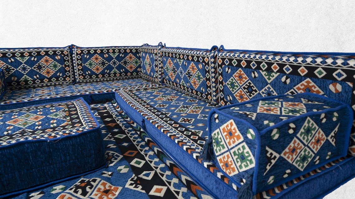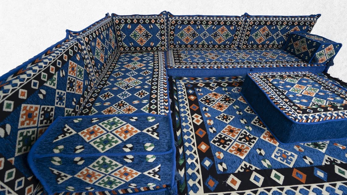 L Shaped Floor Sofa, Moroccan Rug, Sectional Sofas, Arabic Majlis, Seat Cushion, Patio Furniture, Modular Sofa, Ottoman Couch (4'' Thickness Sofa, L Sofa Full Set, Royal Blue)