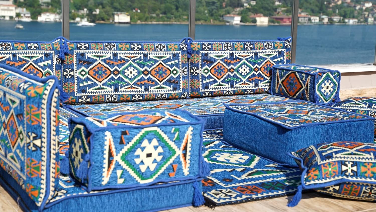 Royal Blue Turkish Floor Sofa, Corner Floor Seating, L Shaped Sofa Set, Oriental Floor Seating, Pallet Sofa, Ethnic Sofa, Bohemian Furniture