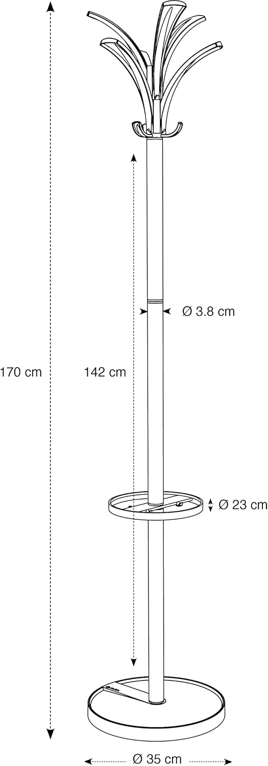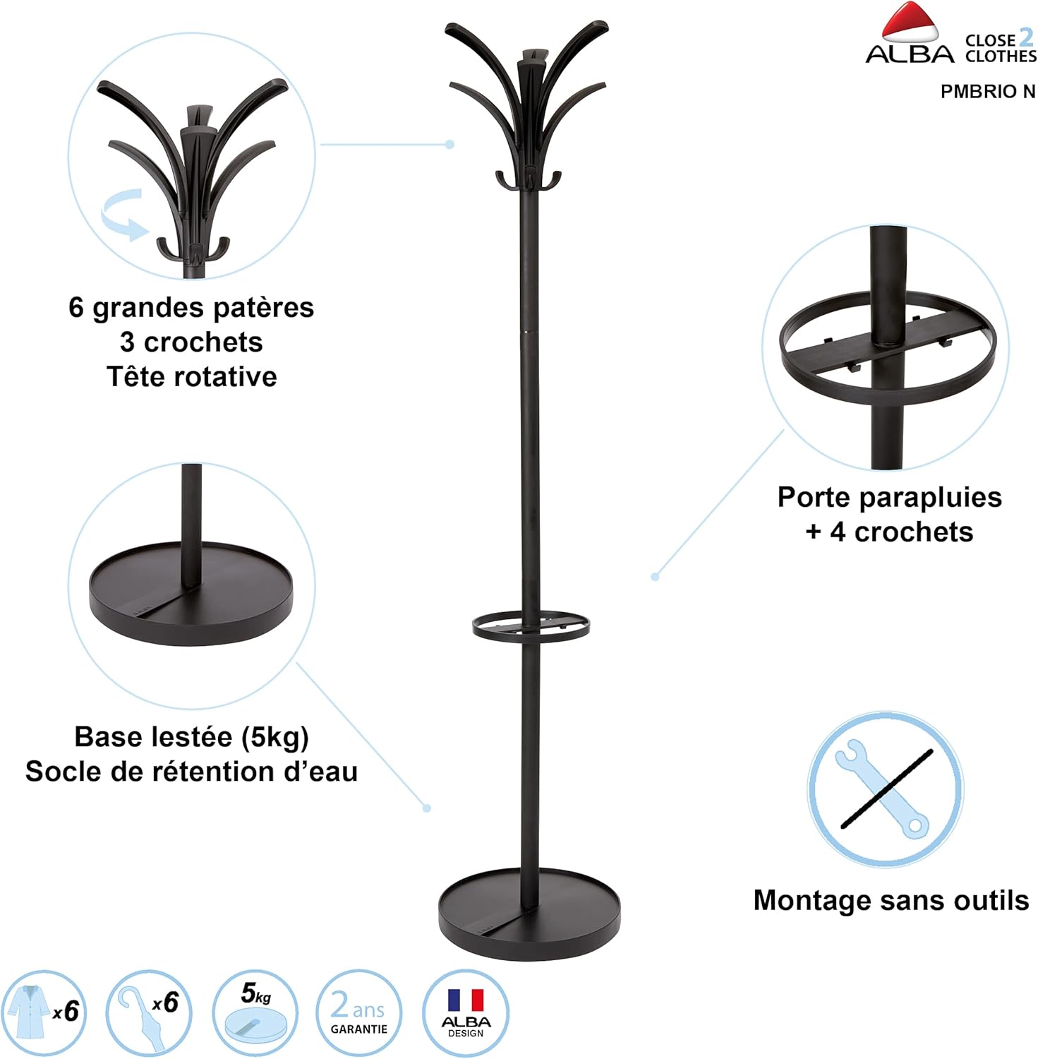 Alba Floor Coat Stand with 6 Pegs and 3 Hooks, Black