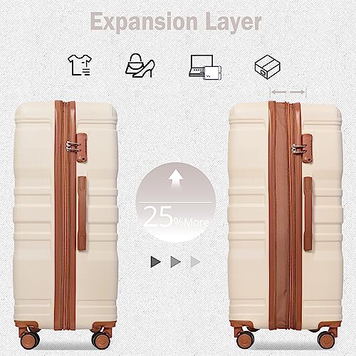 Merax Expandable Hardside Luggage Spinner Wheel Suitcase TSA Lock Suit Case, Brown and Ivory, 4-Piece Set