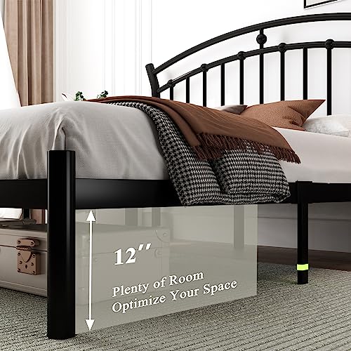 Feonase Full Size White Bed Frame, Heavy-duty Metal Bed Frame with 13 Hardened Steel Slats, 12" Under-Bed Storage, Noise-Free, Easy Assembly