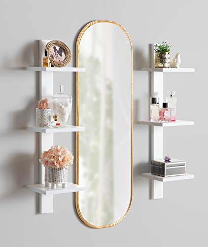 Kate and Laurel Caskill Mid-Century Oval Mirror, 18" x 24", Gold, Capsule-Shaped Accent Mirror for Entryway, Living Room, or Bathroom
