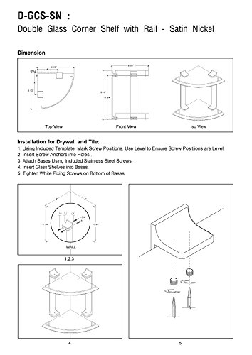 Double Corner Glass Shelf with Rail – Satin Nickel – 5 Year Warrantee