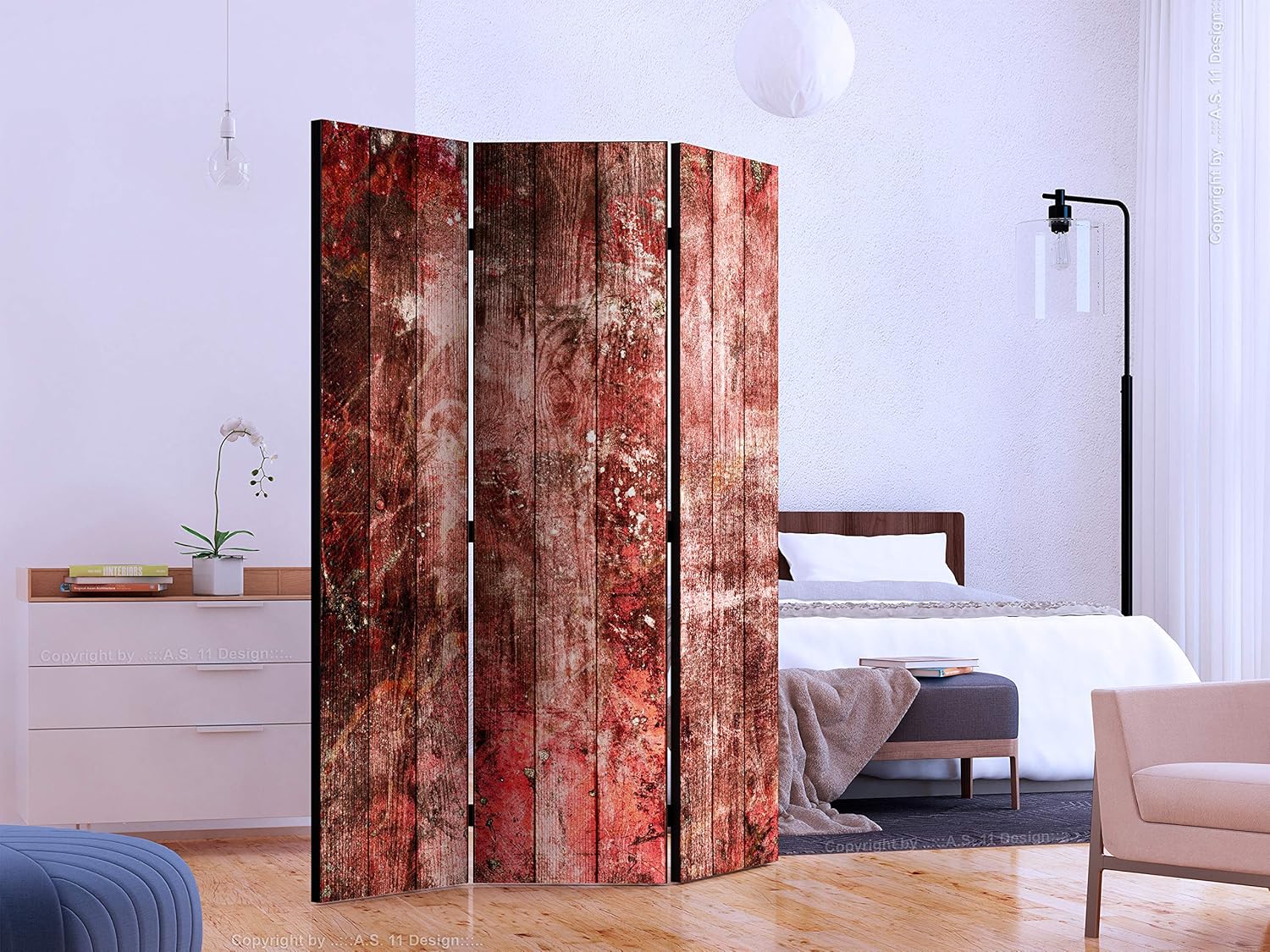 artgeist Acoustic Room Divider Faux Wood Boards 53x68 in - Double-sided Folding Screen Print on Non-woven Canvas Acoustic Foam 3 Panel Home Office f-C-0369-z-b