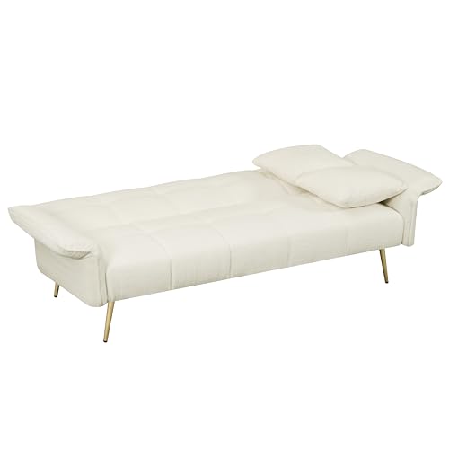 96.06 Inch Plush Teddy Sofa with Special Cloud Design,Velvet Couch W/Wood Frame and Spring,for Studios,Offices,Dorms,Condos,Living Room,White, 96.06"