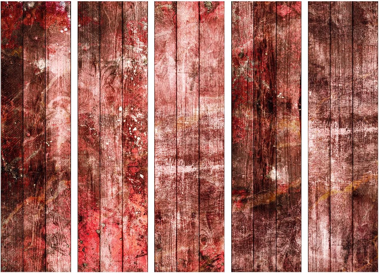 artgeist Acoustic Room Divider Faux Wood Boards 90x68 in - Double-sided Folding Screen Print on Non-woven Canvas Acoustic Foam 5 Panel Home Office f-A-0776-z-c