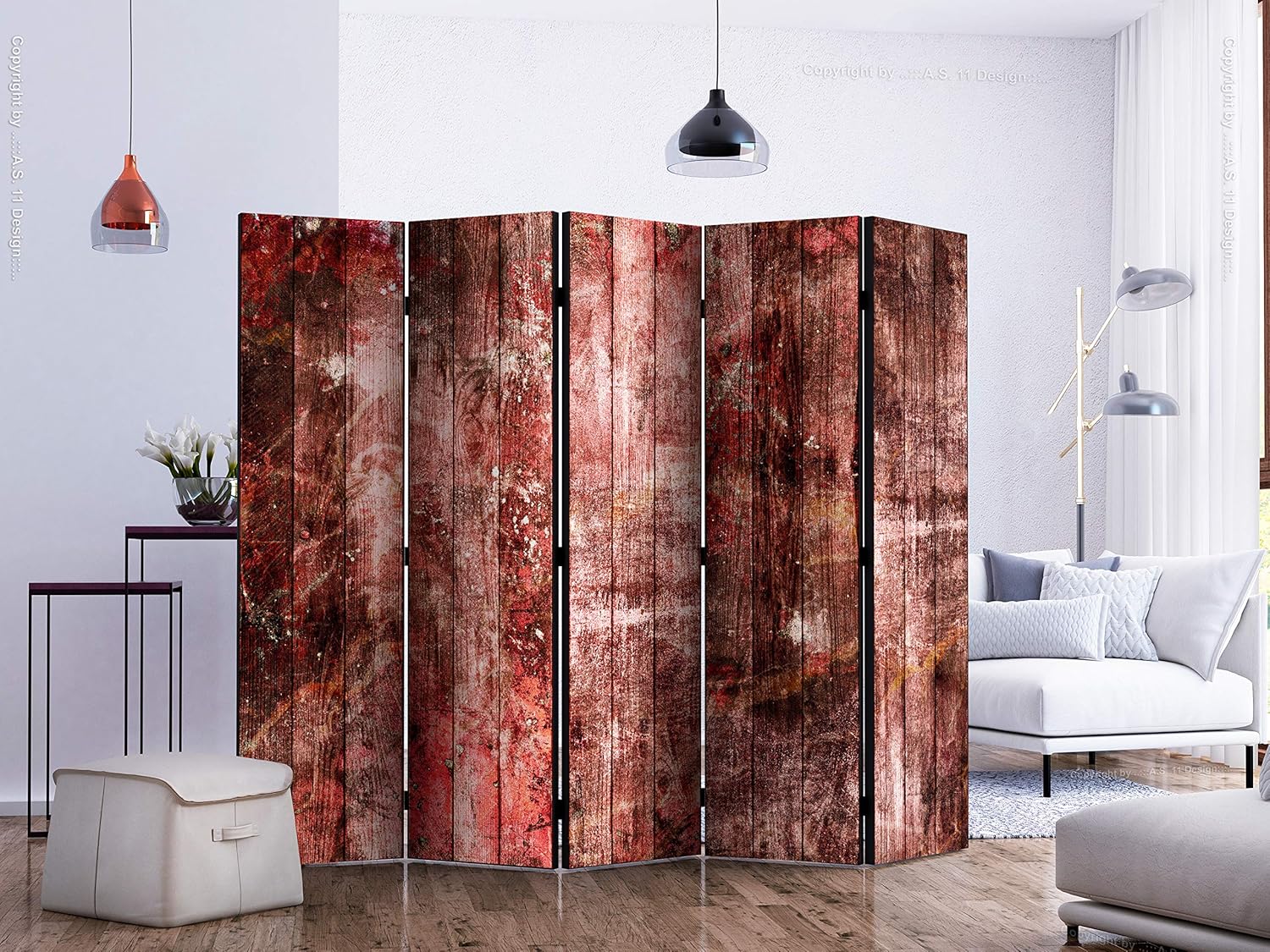 artgeist Acoustic Room Divider Faux Wood 90x68 in - Double-sided Folding Screen Print on Non-woven Canvas Acoustic Foam 5 Panel Home Office Boards f-C-0337-z-c