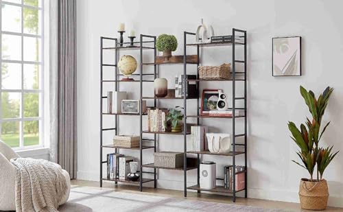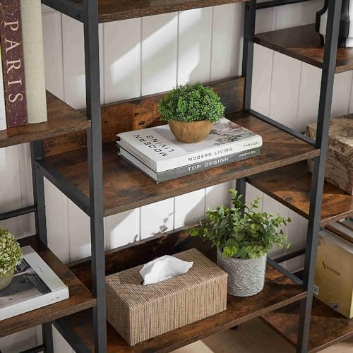 5 Tier Bookcase Home Office Open Bookshelf,Organizer Book Case,Plant Shelf Stand,70.1" Industrial Bookshelf With Steel Frame&MDF Boards,Bookshelf Plant Stand For Living Room,Office (Dark Grey)
