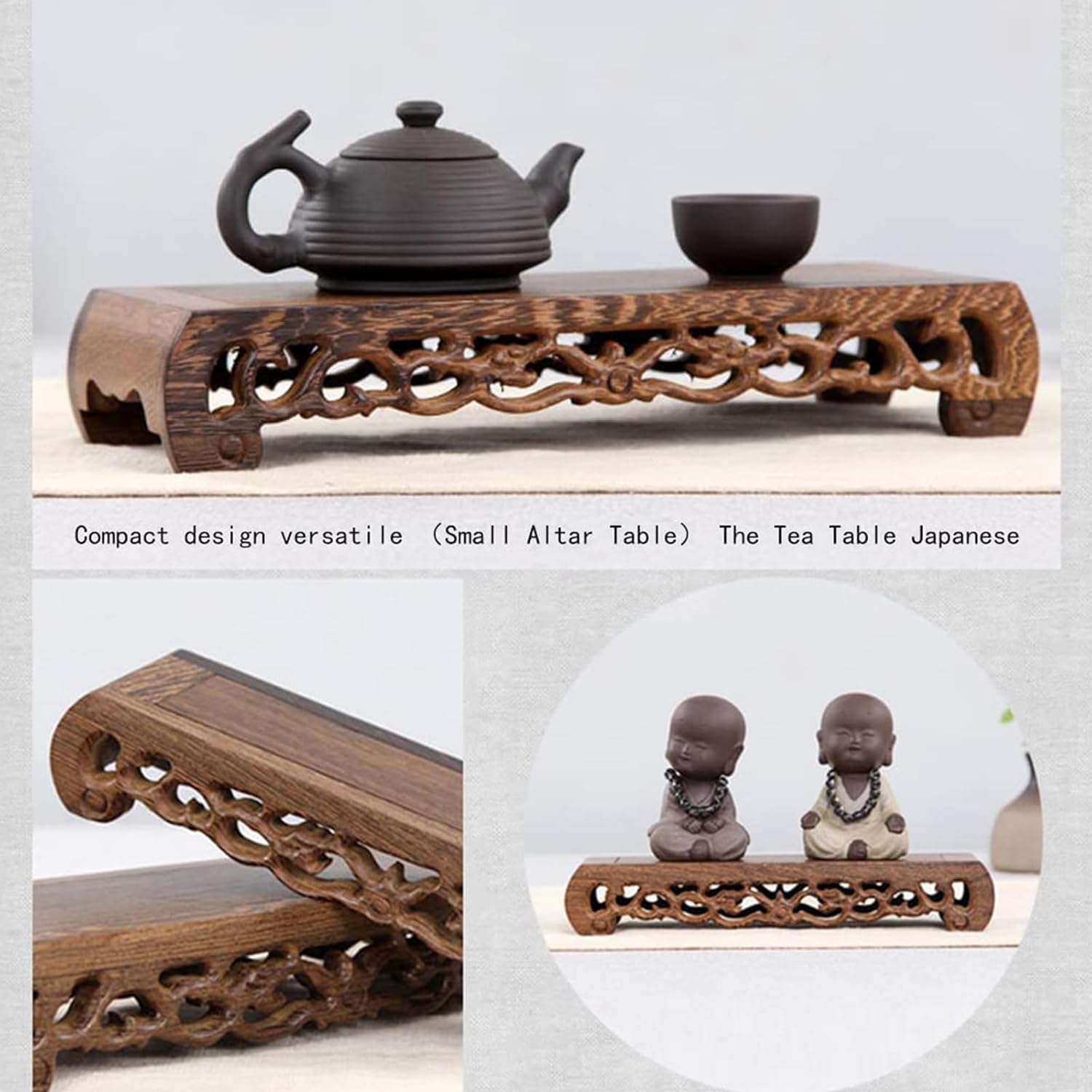 Small Altar Table,Meditation Table,Hand Carved Natural Wood Small Puja Table, Used in The Tea Table Japanese,Study Room,Yoga Room.IT is 15.1 Inches Long,6.9 Inches Wide, 2.7 Inches Tal, Brown