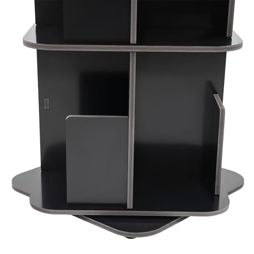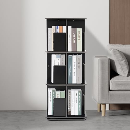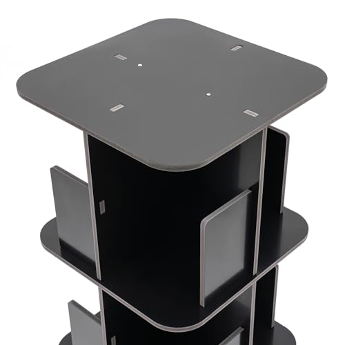 Rotating Bookshelf, 3 Tier 360° Revolving Bookcase Corner PVC Wood Board Bookcase, Stackable Bookshelf Organizer, Storage Display Rack Floor Standing for Office Home Living Room (Black)