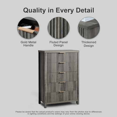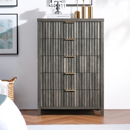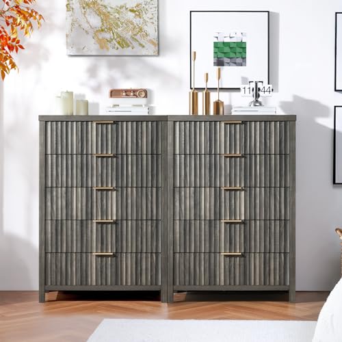 5 Drawers Dresser, 44 Inches Tall Modern Dresser for Bedroom, Curved Profile Design Chest of Drawers, Wood Drawer Organizer for Living Room, Hallway, Entryway (Pale Oak, 2 Pieces)