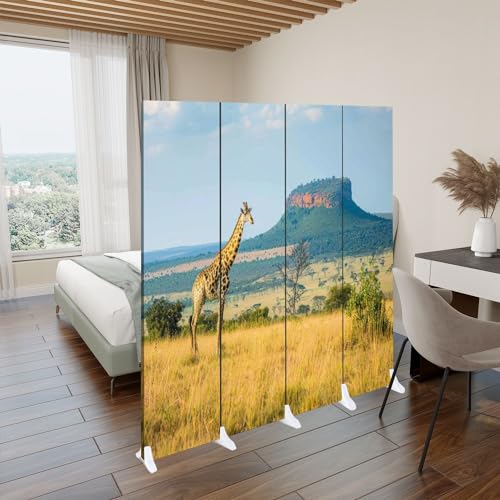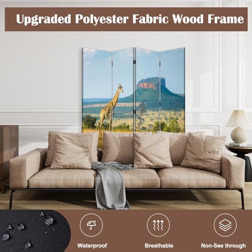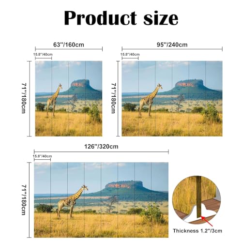 Folding Room Divider Wall Privacy Screen Empty Wooden Board Front Mountain ranges Portable Partition Room Separator Panel for Home Office Bedroom 8 Panel