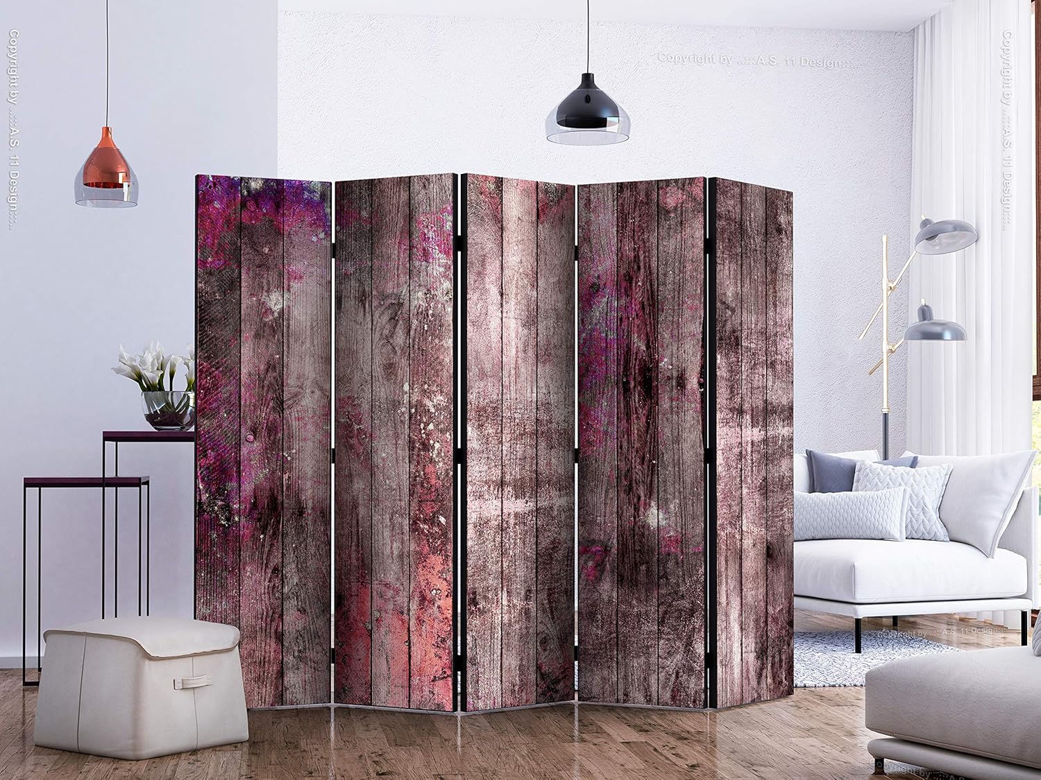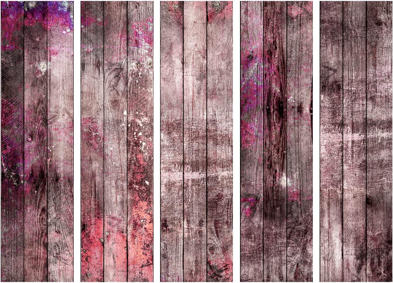 artgeist Acoustic Room Divider Faux Wood 90x68 in - Double-sided Folding Screen Print on Non-woven Canvas Acoustic Foam 5 Panel Home Office Boards Violet Brown f-A-0770-z-c