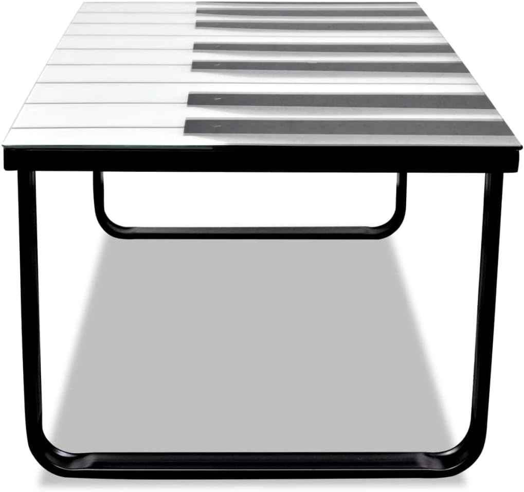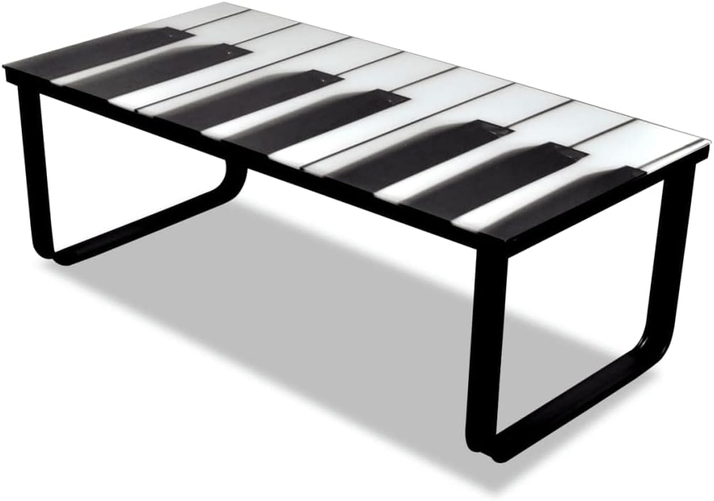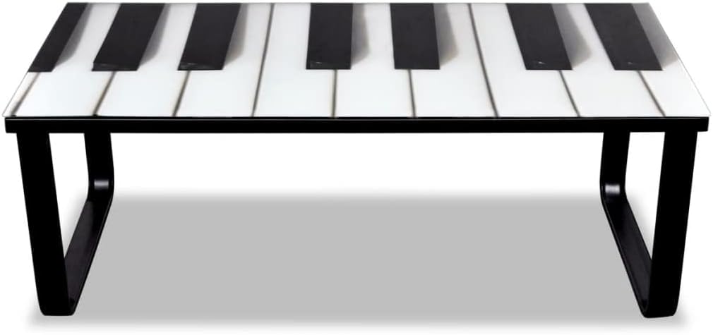 Mirrored Coffee Table Glass Boards Cocktail Table Coffee Table with Piano Printing Glass Top for Living Room Modern Design Home Furniture Easy Assembly 35.4" x 35.4" x 11" (L x W x H)