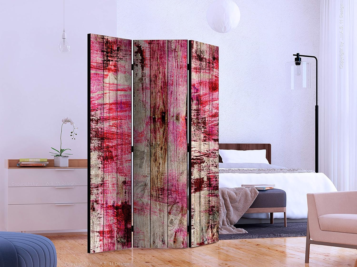 artgeist Acoustic Room Divider Faux Wood Boards 53x68 in - Double-sided Folding Screen Print on Non-woven Canvas Acoustic Foam 3 Panel Home Office f-C-0371-z-b