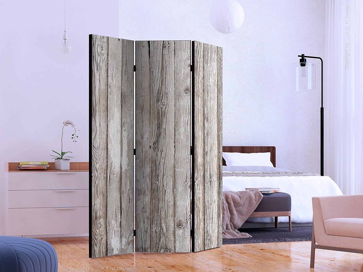 artgeist Acoustic Room Divider Faux Wood 53x68 in - Double-sided Folding Screen Print on Non-woven Canvas Acoustic Foam 3 Panel Home Office DesignWooden Planks Boards Lumber 3D f-A-0455-z-b