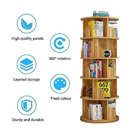 360° Rotating Bookshelf Wood Plastic Board Bookshelf Space Saving Rack Bookcase Home Bookshelves Living Room Bedroom Hallway