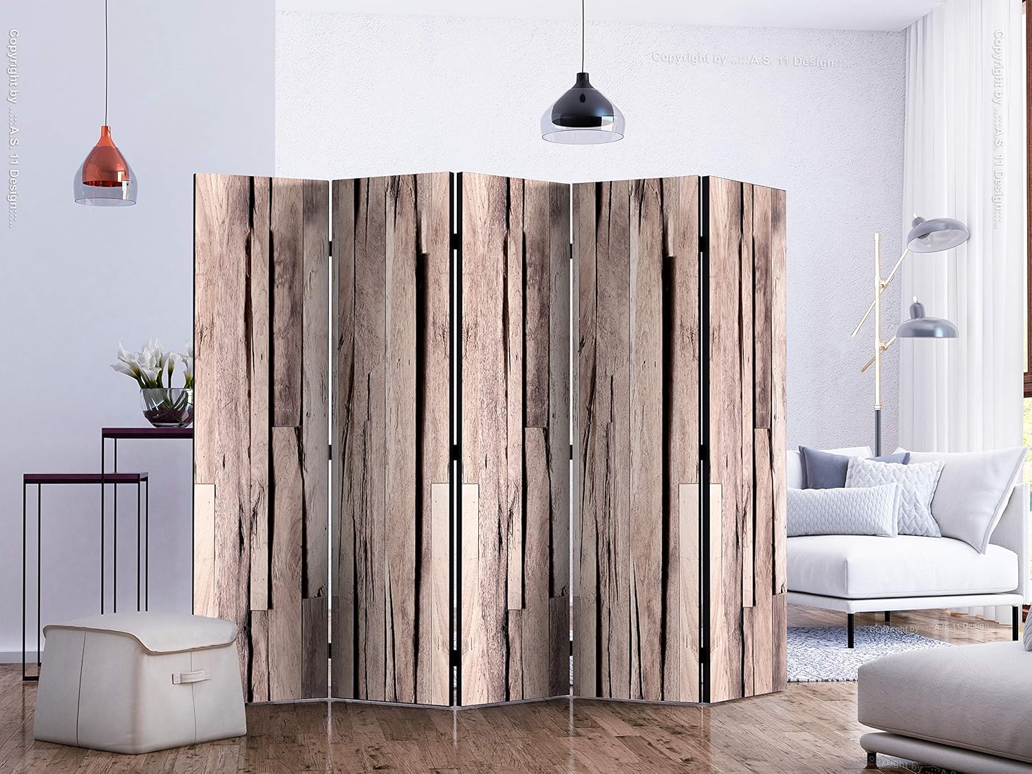 artgeist Acoustic Room Divider Faux Wood 90x68 in - Double-sided Folding Screen Print on Non-woven Canvas Acoustic Foam 5 Panel Home Office Boards f-C-0363-z-c