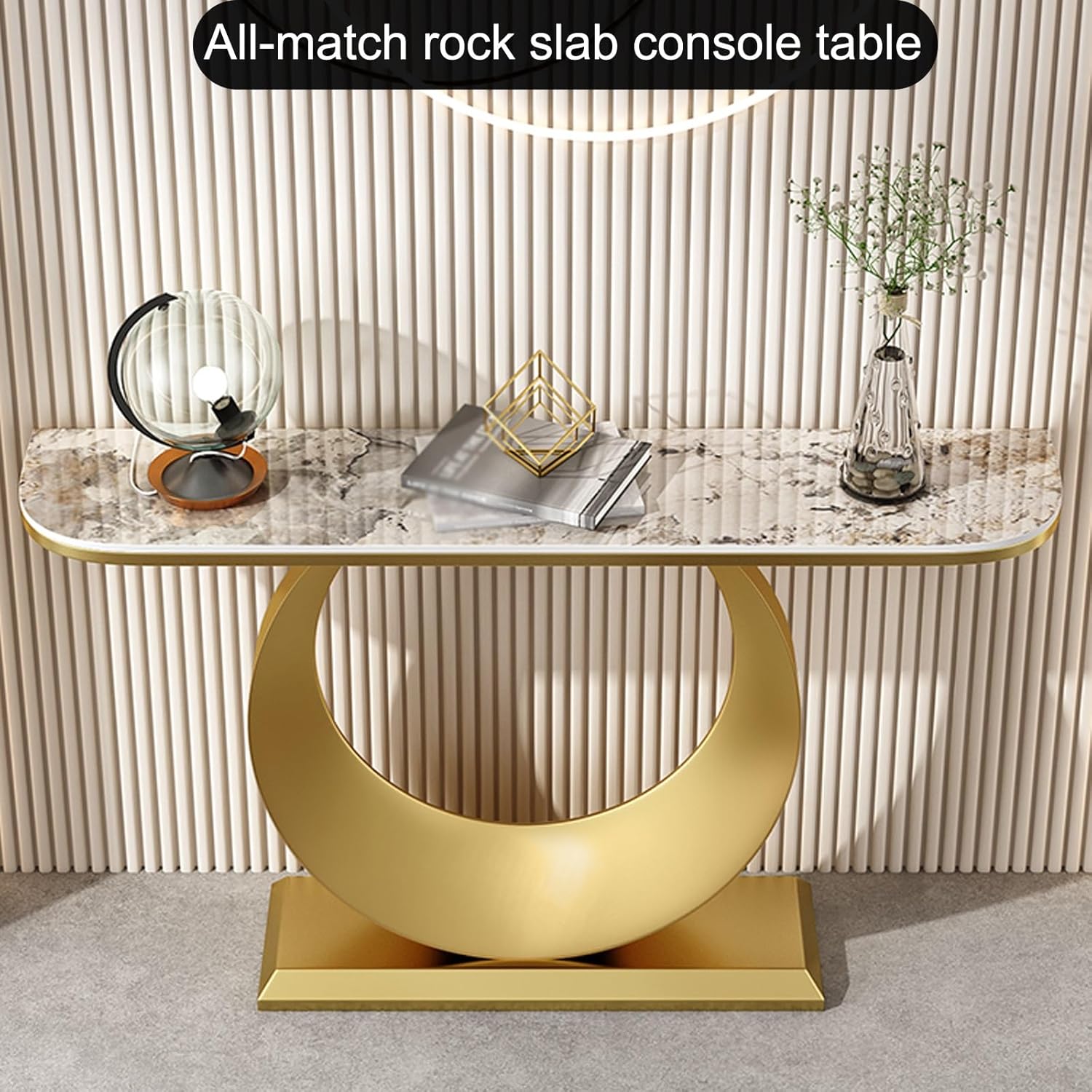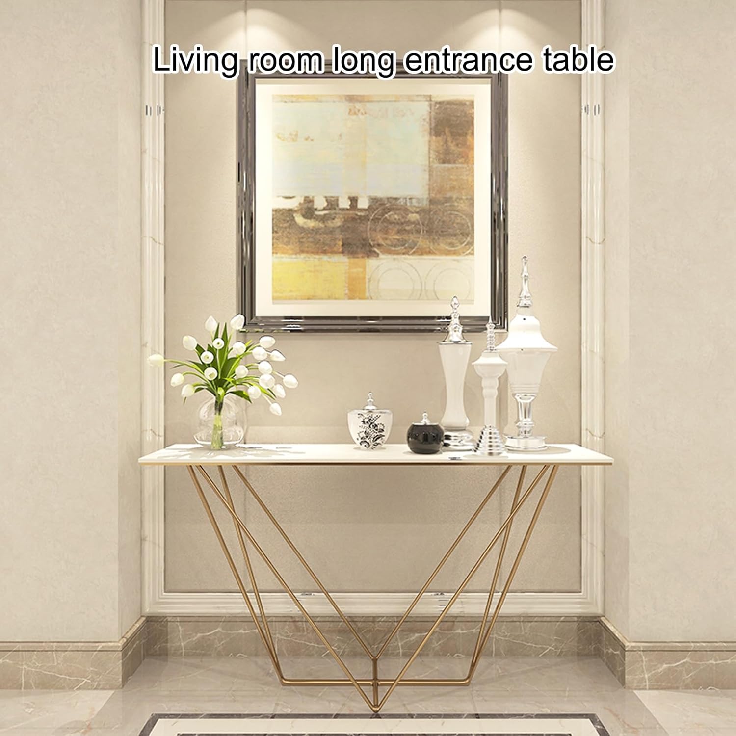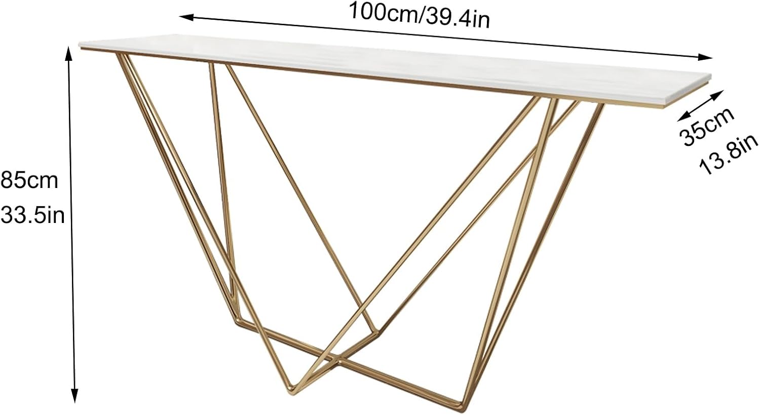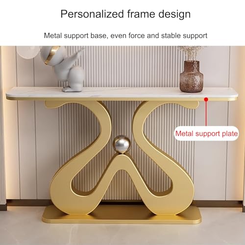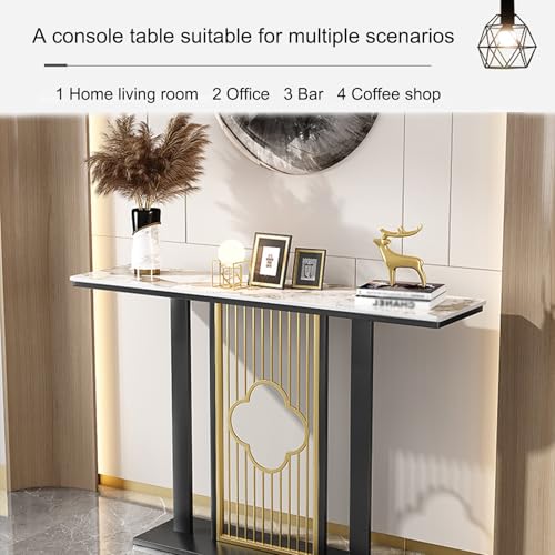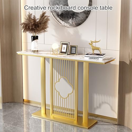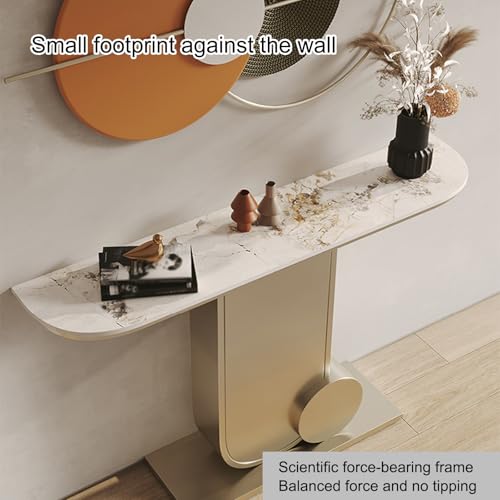 Console Table for Entryway | Sintered Stone Narrow Long Entryway Table | Console Table with Geometric Metal Legs | for Entryway, Hallway, Living Room, Foyer, Corridor(Gold)