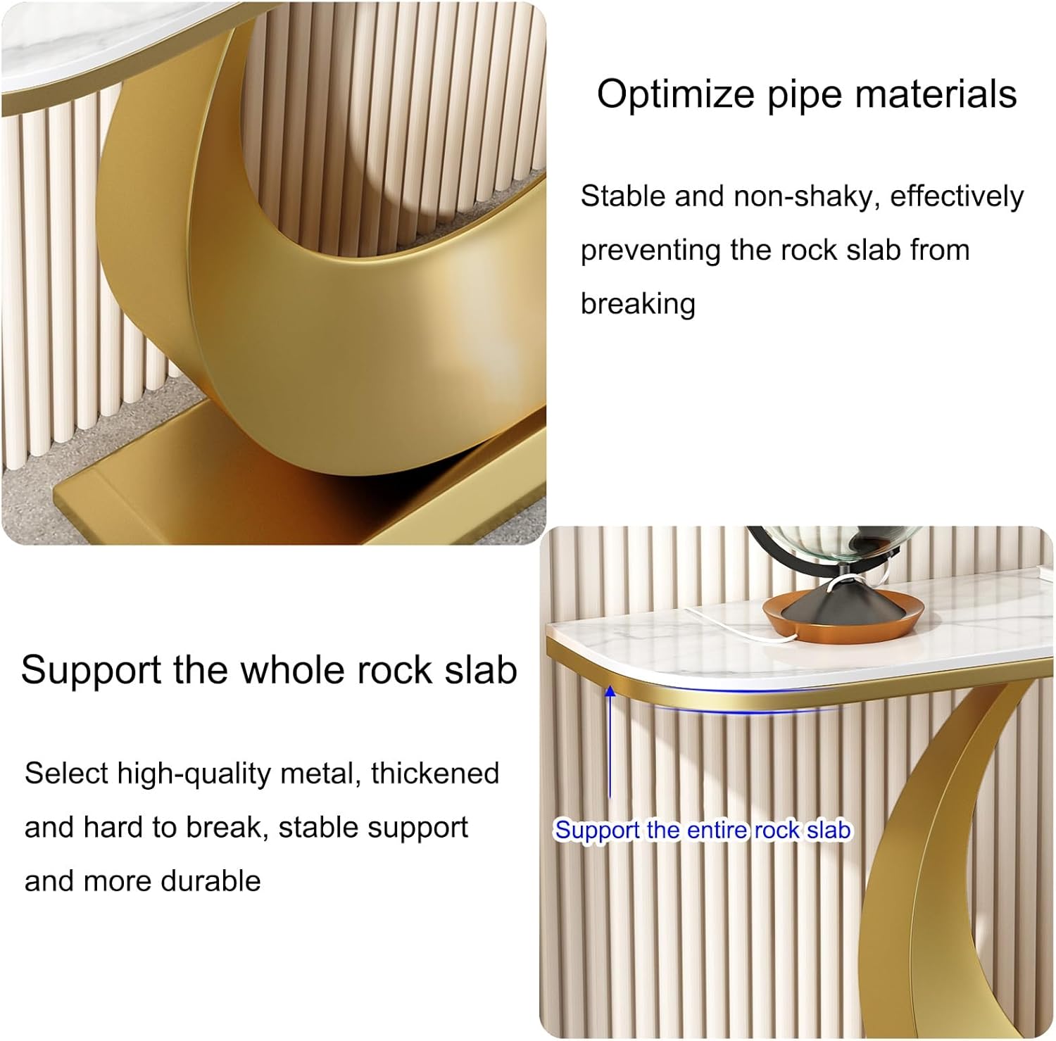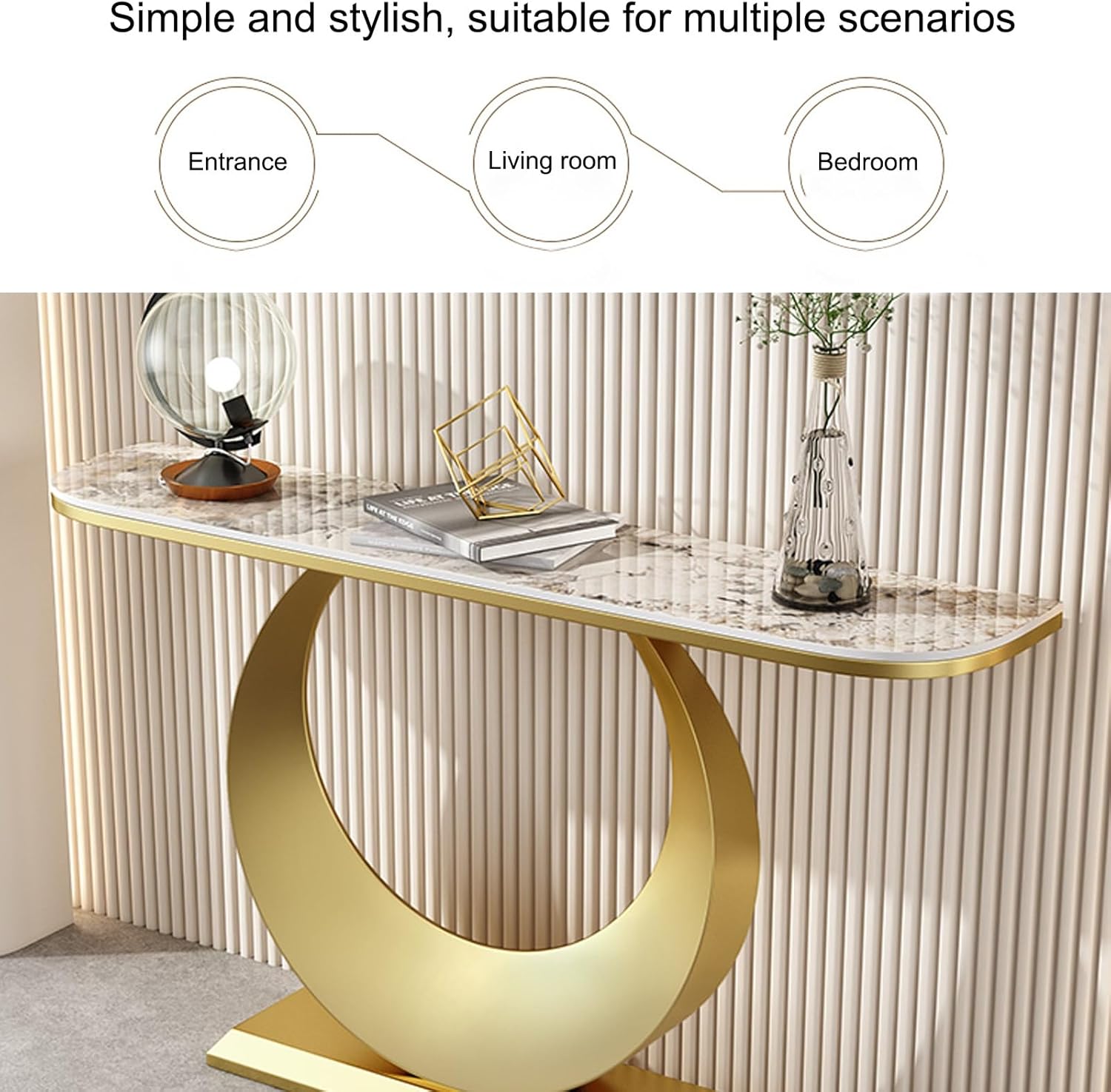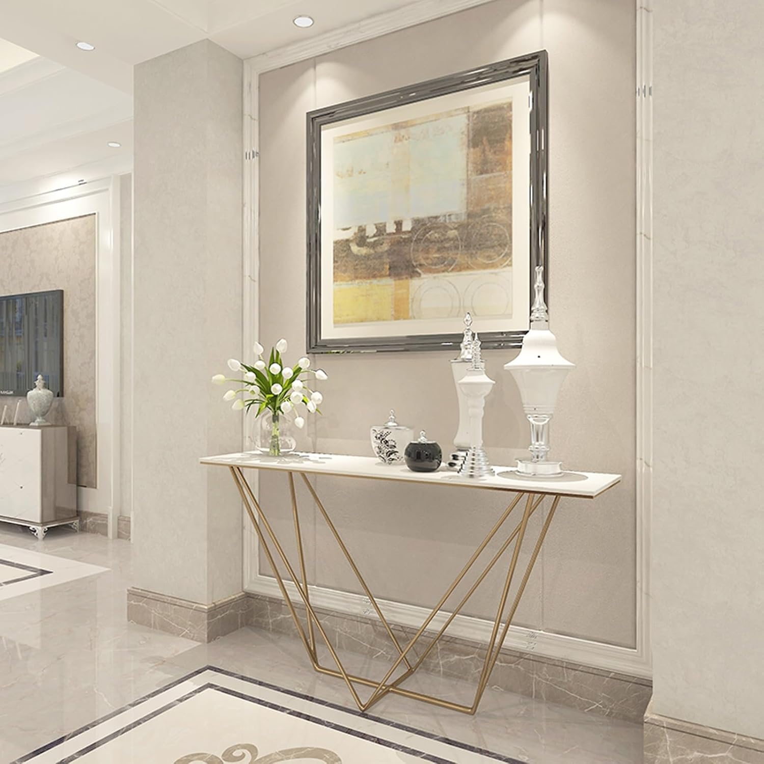 Console Table for Entryway | Sintered Stone Narrow Long Entryway Table | Console Table with Geometric Metal Legs | for Entryway, Hallway, Living Room, Foyer, Corridor(Gold)
