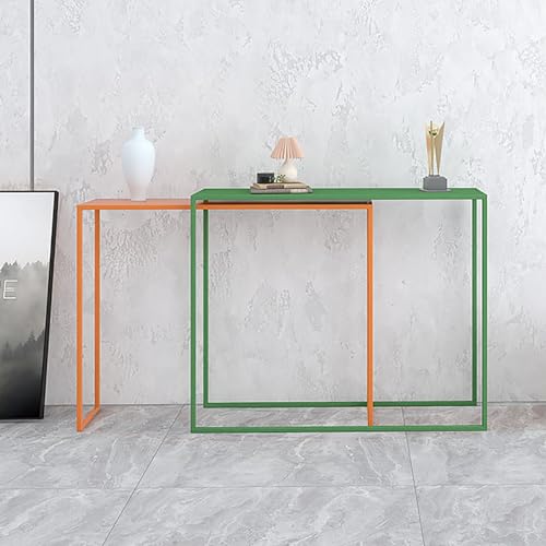 Console Table, Industrial Hallway Table for Entryway, Narrow Long Hallway/Entryway Table, Entrance Table Geometric Metal Frame, for Kitchen Entryway Living Dining Room(Color:Pink+Light Blue)