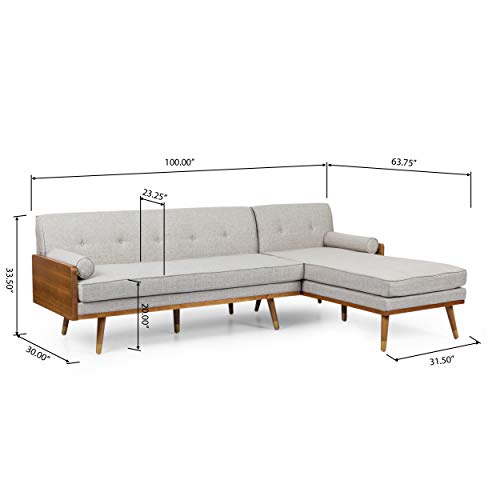 Christopher Knight Home Harriet Sectional, Light Blush, Dark Walnut