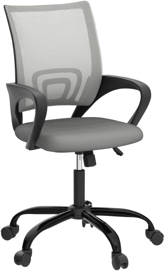 Office Chair Ergonomic Computer Desk Chair Mesh Home Office Chairs with Thick Seat and Comfortable Armrest, Swivel Chair for Adult, Adjustable Backrest and Height (Grey)