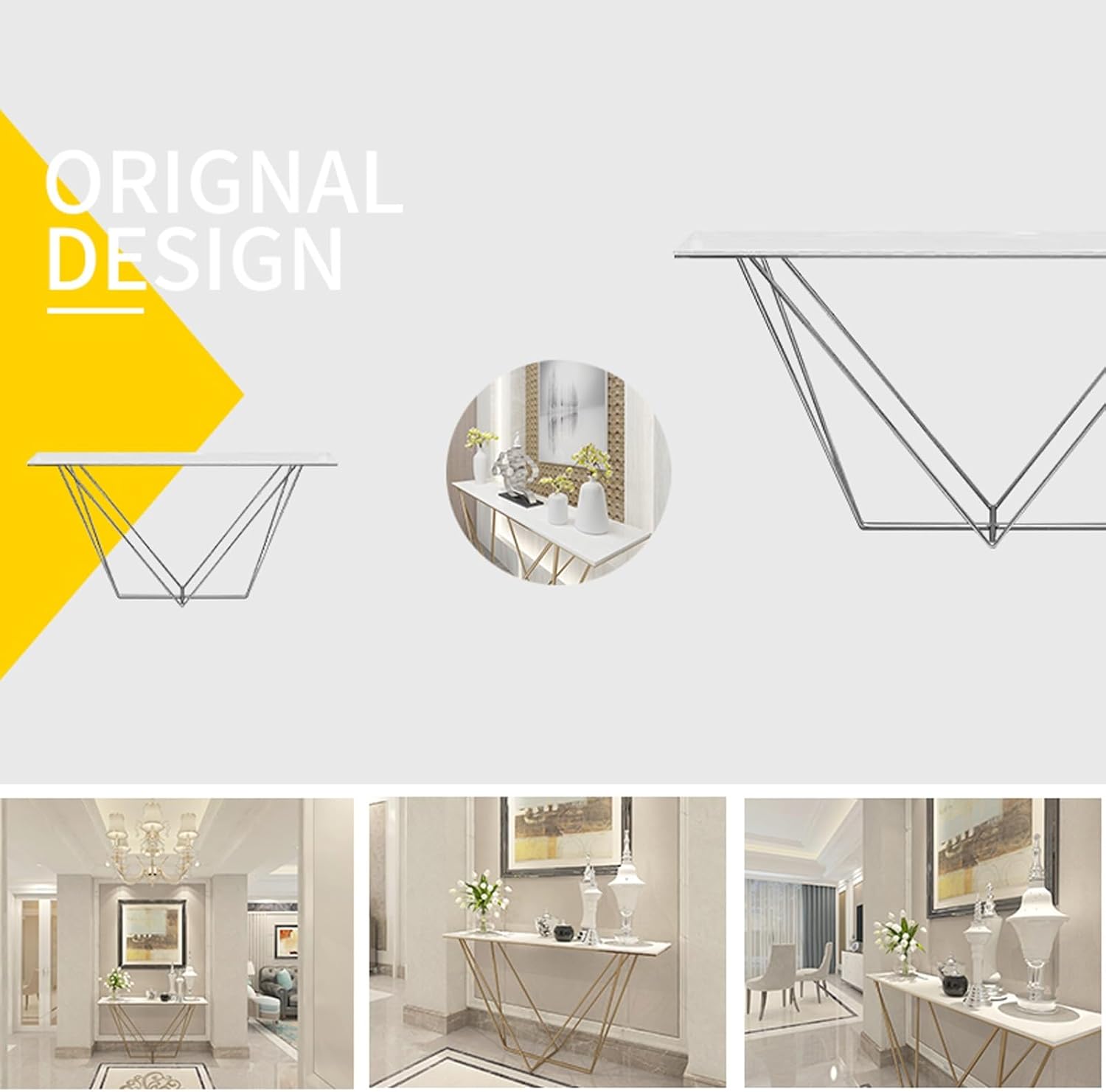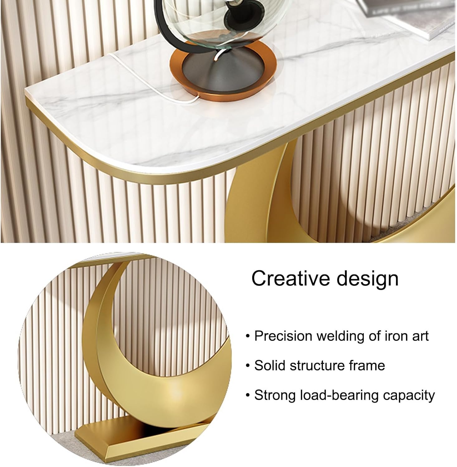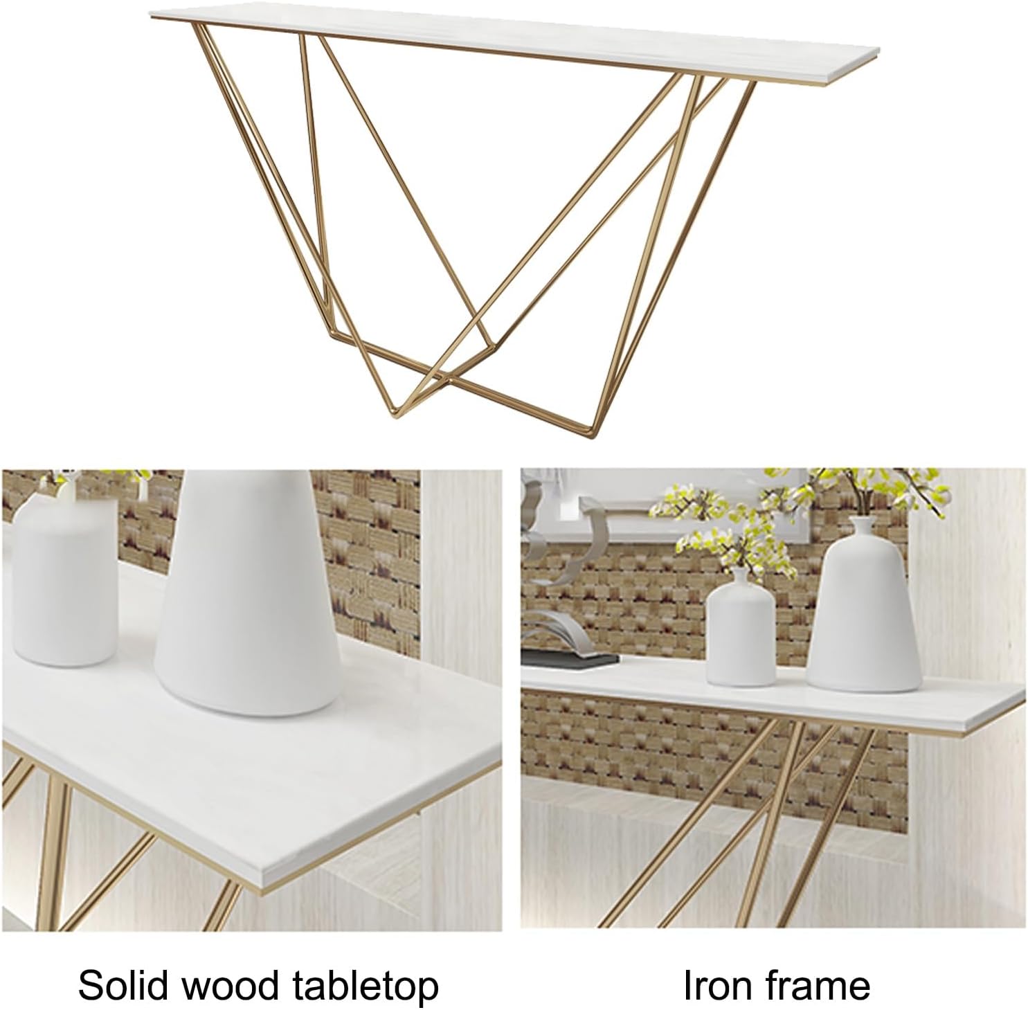 Console Table for Entryway, Narrow Console Table, Modern Entryway Foyer Table, Geometric Designed Accent Table with Metal Base, for Living Room, Hallway, Entrance(Gold)