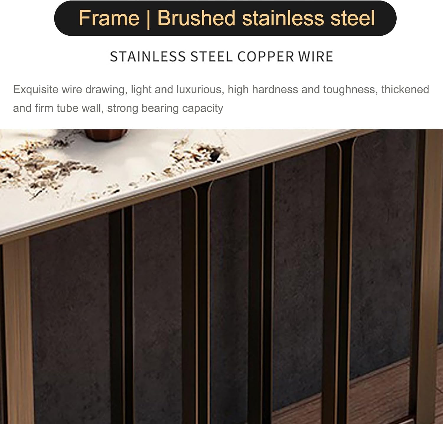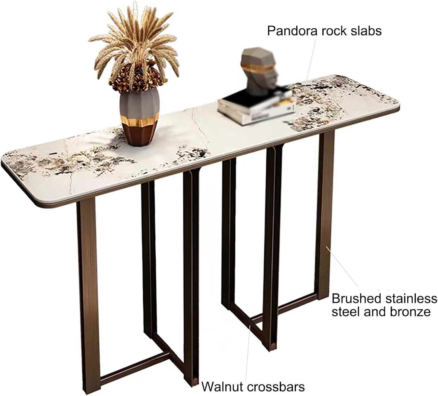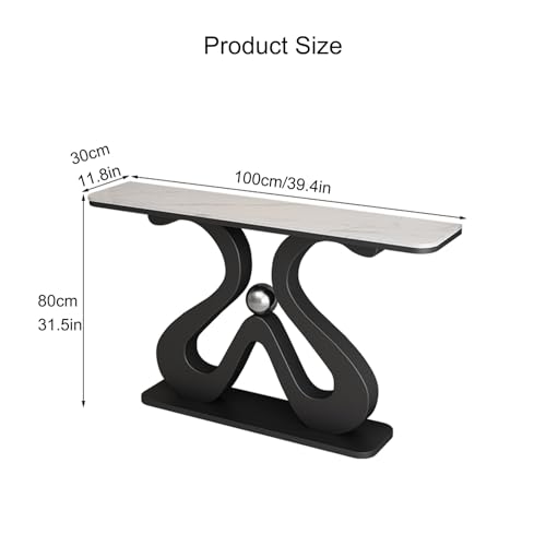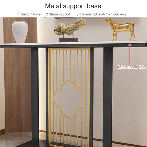 Console Table with Geometric Metal Base | Sintered Stone Narrow Long Entryway Table | Contemporary Console Table | for Living Room/Hallway/Foyer | Easy Assembly