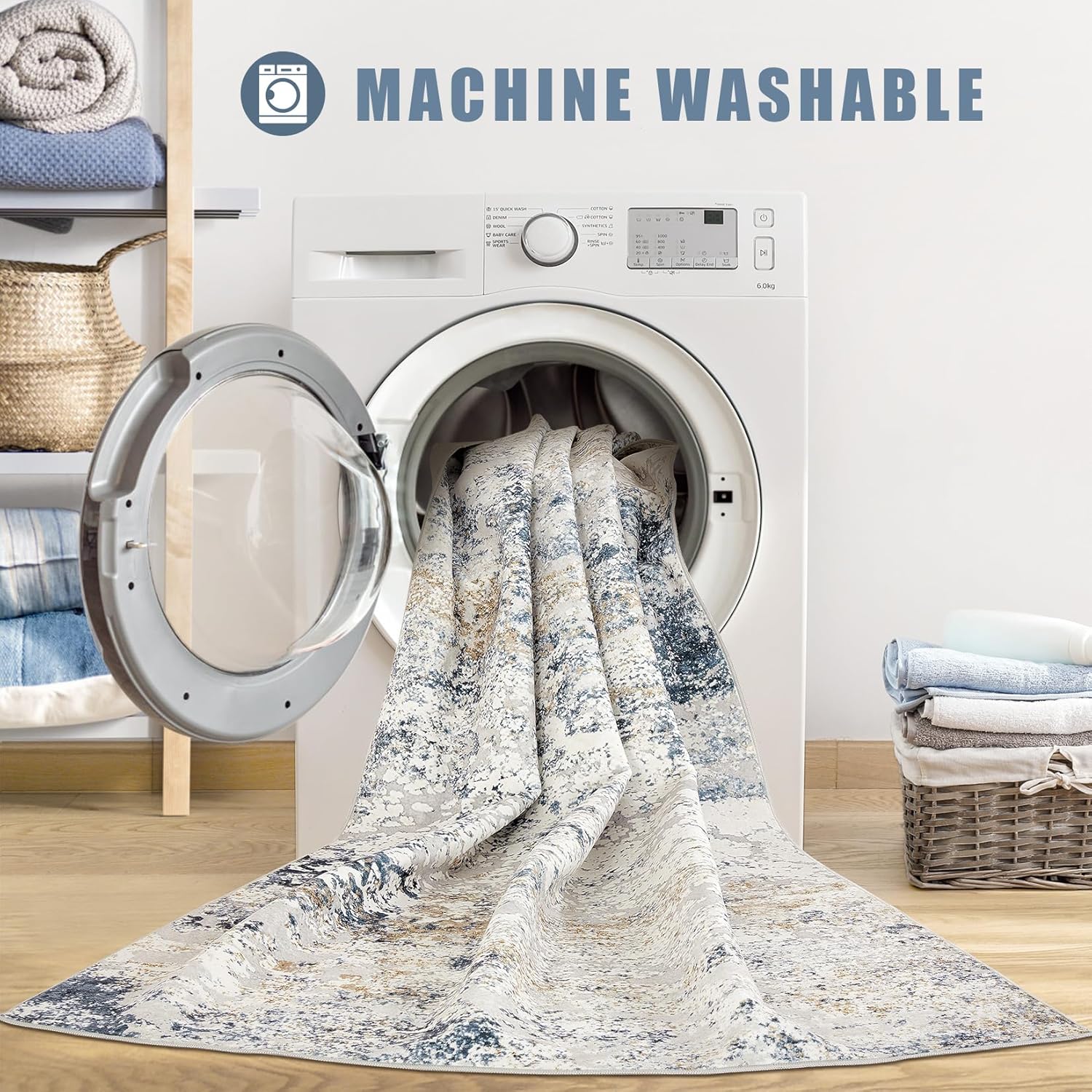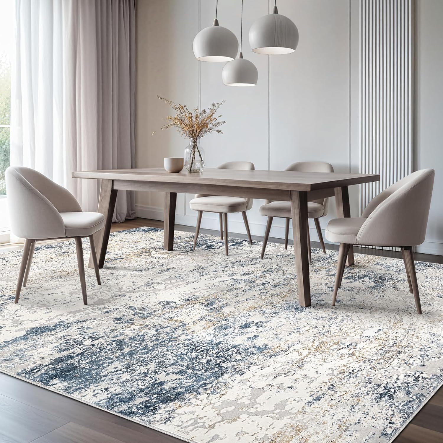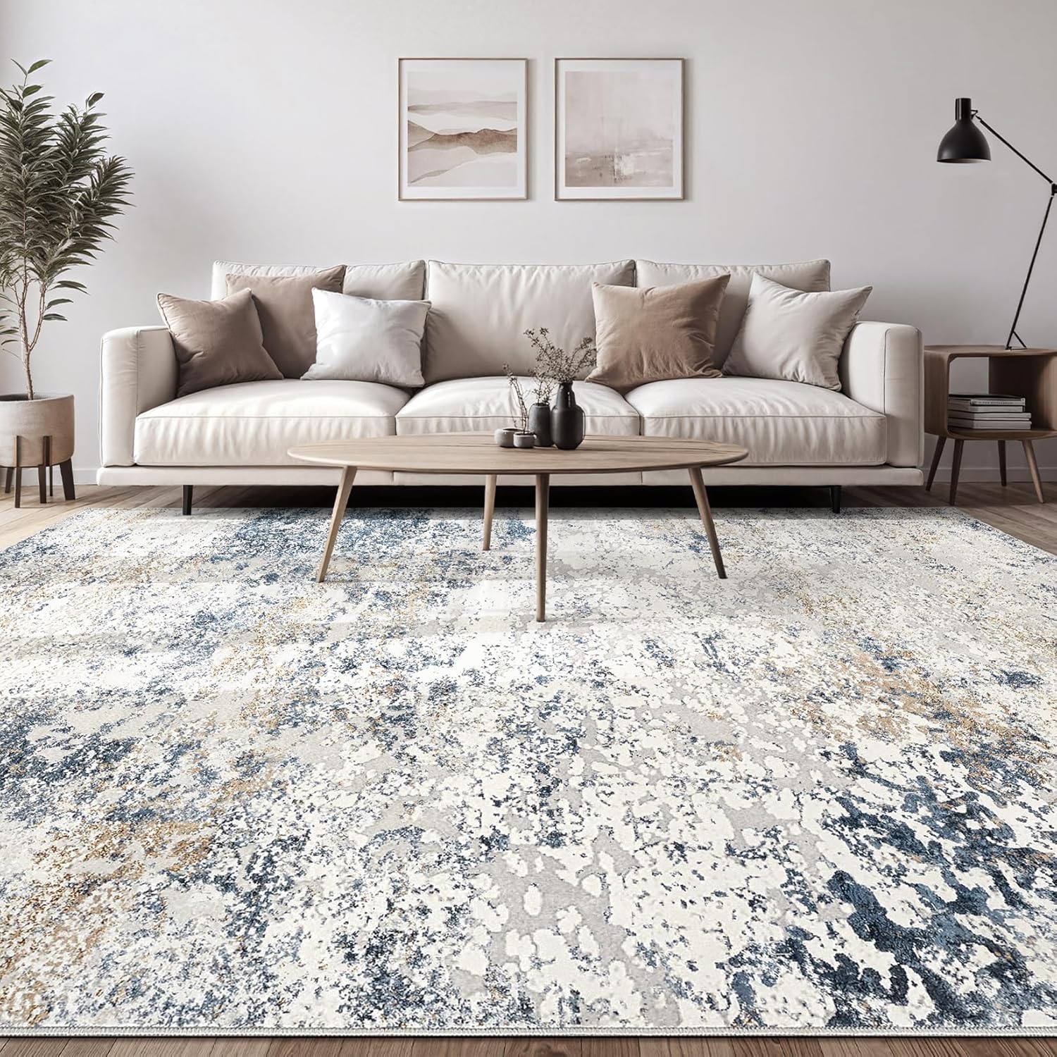 Area Rug Living Room Rugs - 5x8 Abstract Large Soft Indoor Washable Rug Neutral Modern Low Pile Carpet for Bedroom Dining Room Farmhouse Home Office - Beige Blue