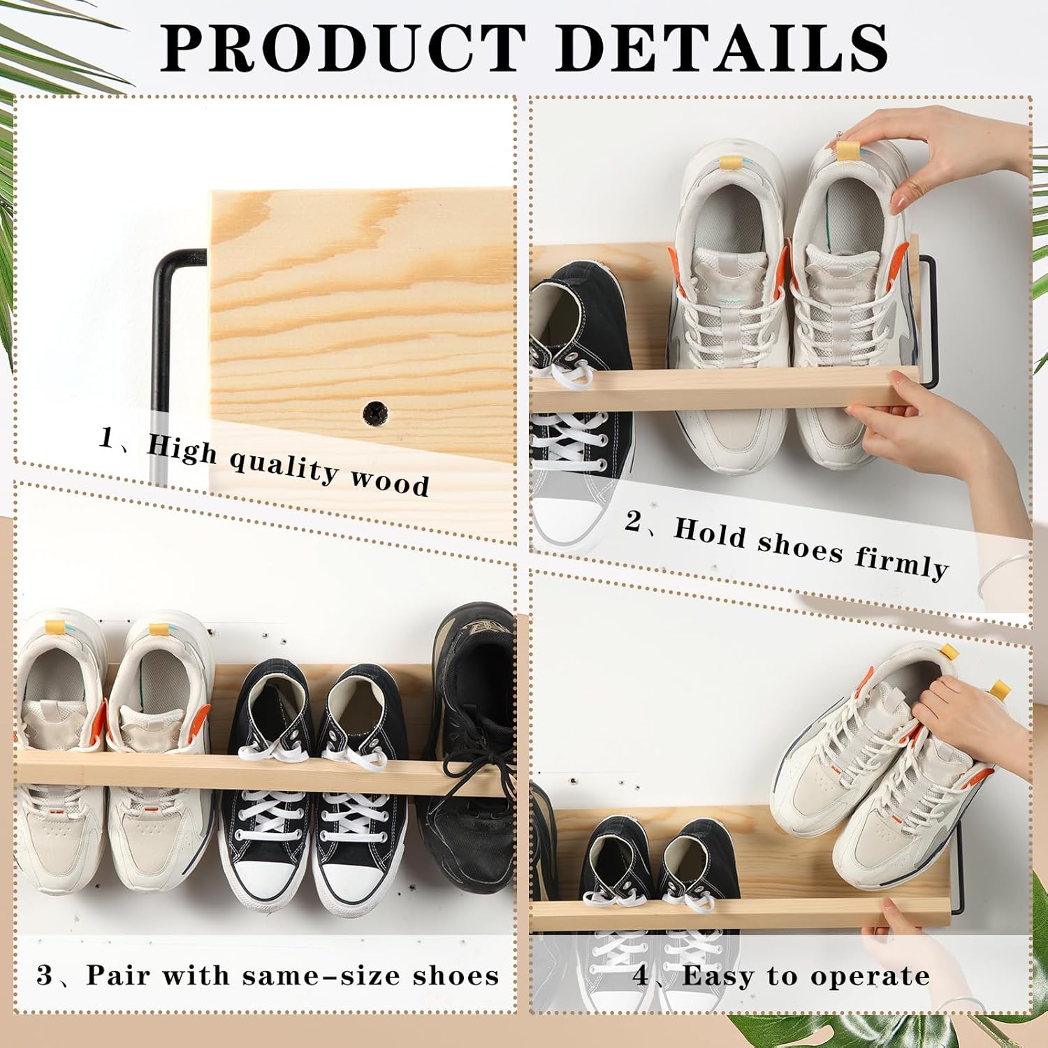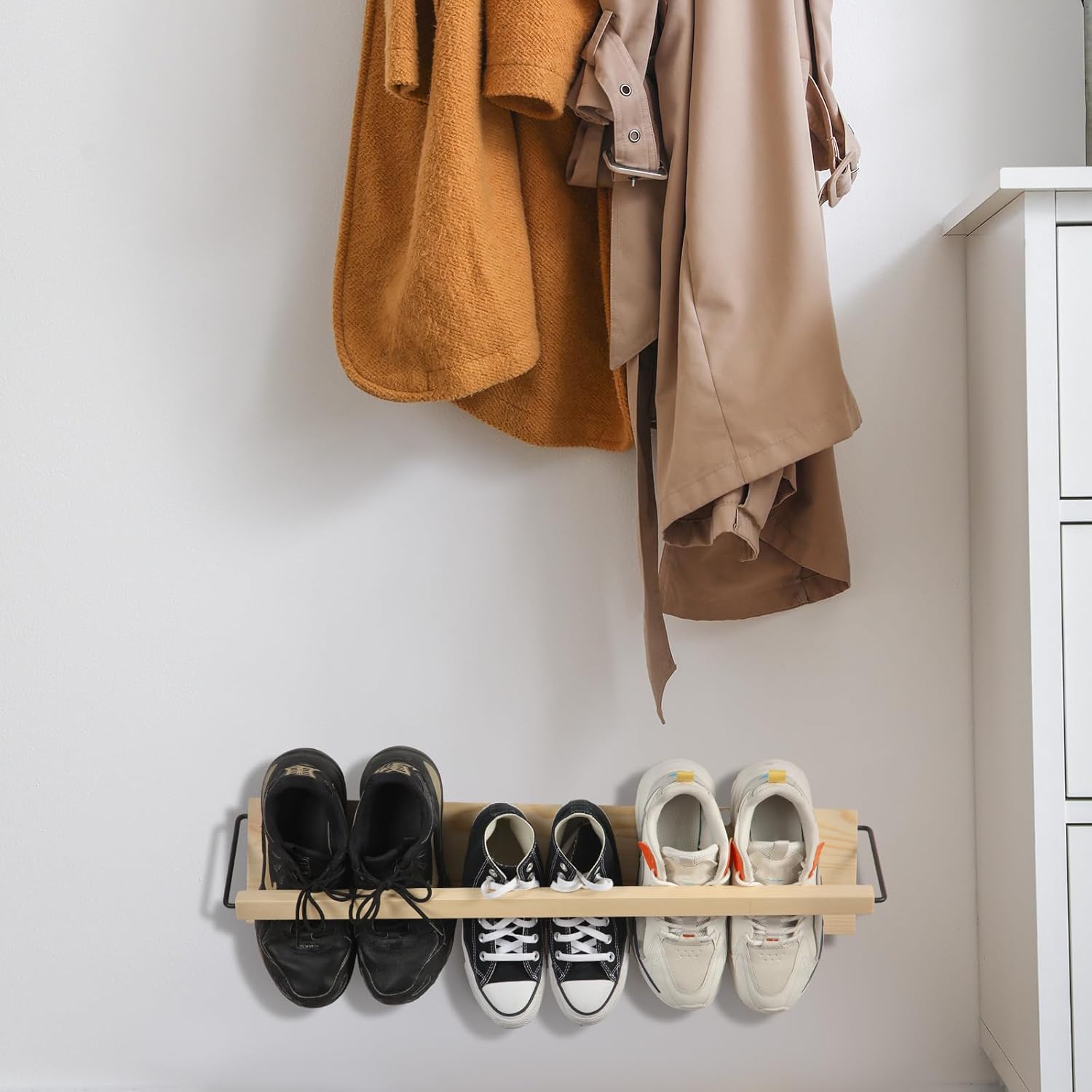 Mifoci 2 Pcs Wall Mounted Shoe Rack Wooden Shoe Rack Organizer Wall Shoe Holder Modern Compact Wood Rv Shoe Storage for Sneaker Kid Footwear Slipper Boots Entryway Narrow Spaces Hallway (28.35'' Long)