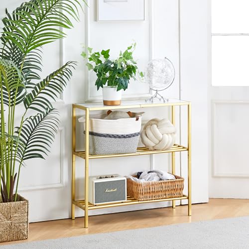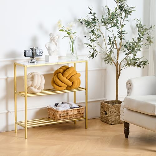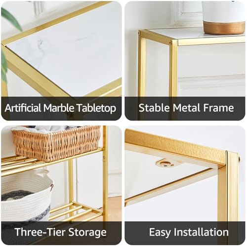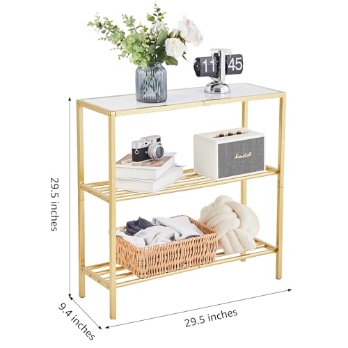 Wimarsbon 29.5" Narrow Console Table, 3-Tier Entryway Table, Thin Sofa Table with Shelves, Metal Frame, Side Table, Display Table, for Hallway, Entrance, Living Room, Bedroom (Black Frame White)